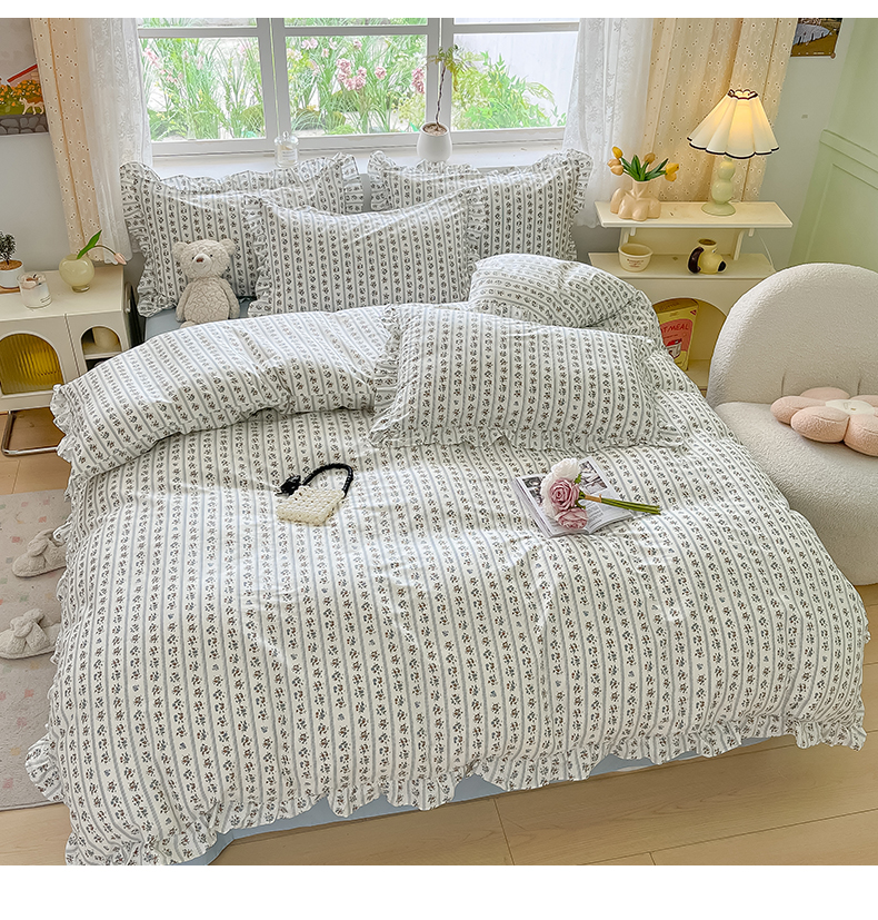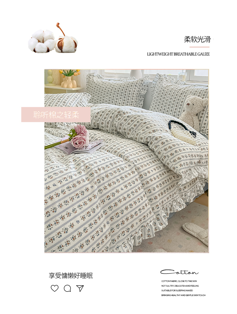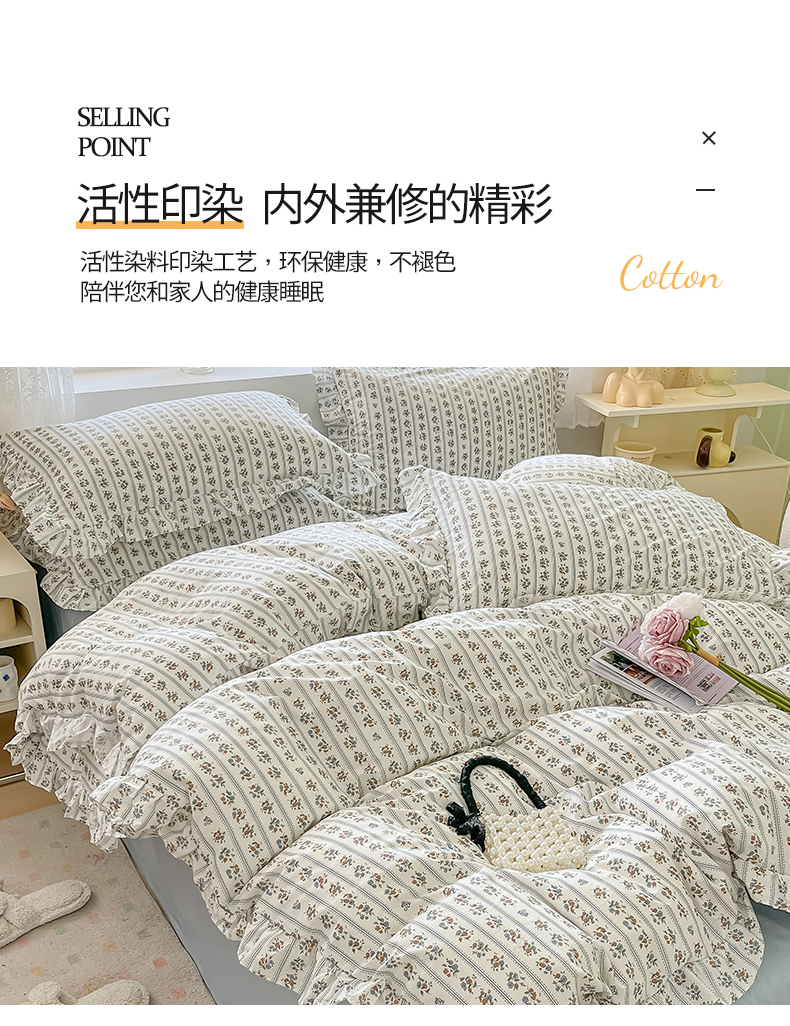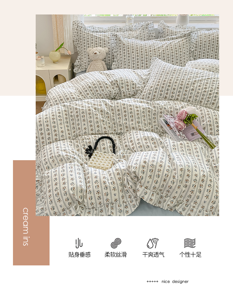 当前位置: 91家纺网 > 商品网购 > 床品套件 > 四件套 > 全棉普通四件套 > 柠馨 2024新款全棉印花浪漫花边款四件套 可可庄园