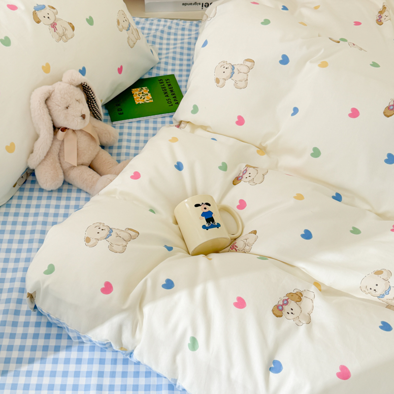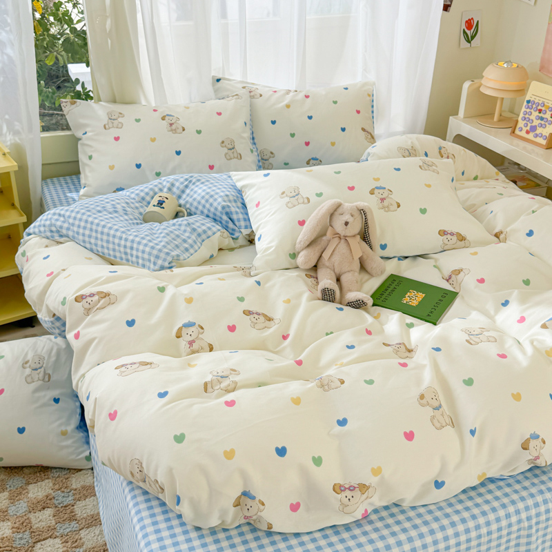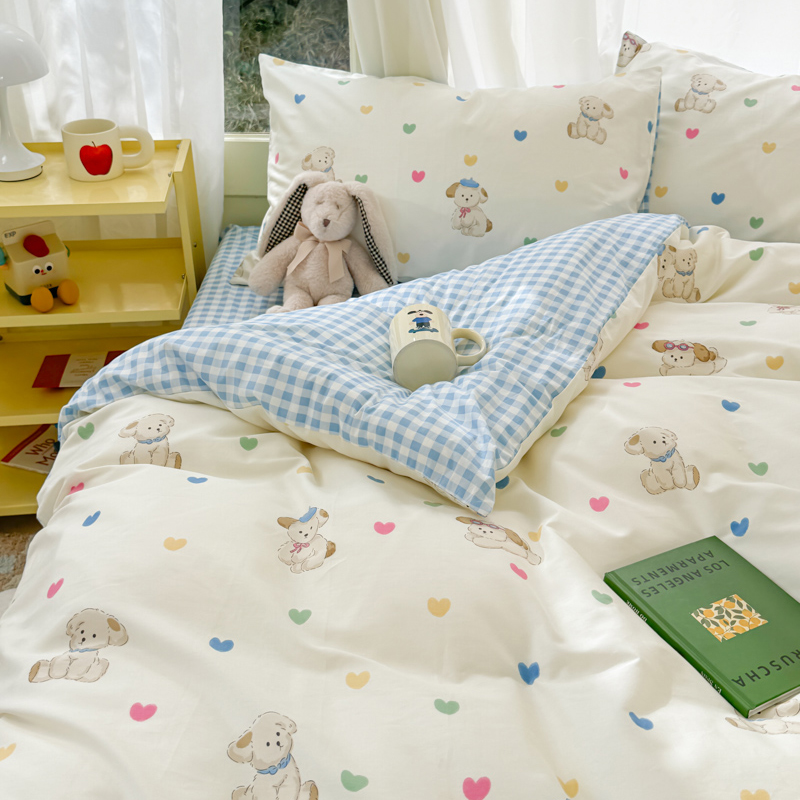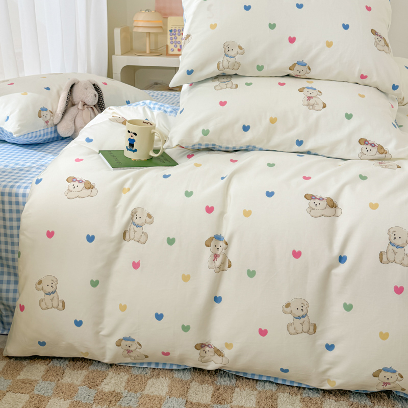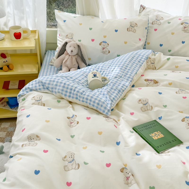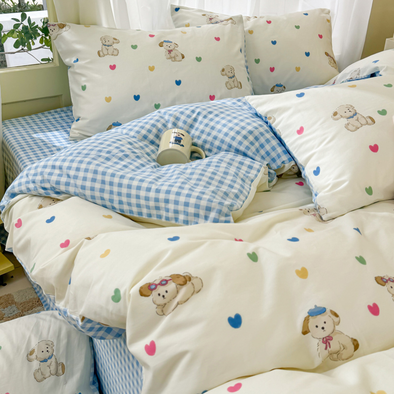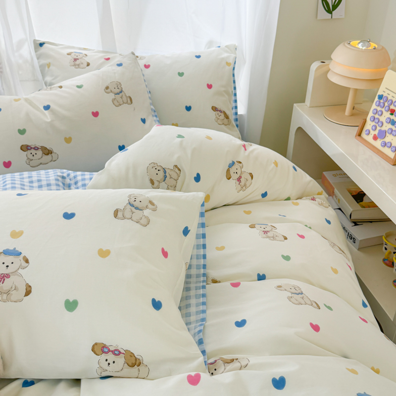 呗旺鹿 2024新款小清新13372全棉四件套纯棉四件套学生三件套 多巴胺小狗