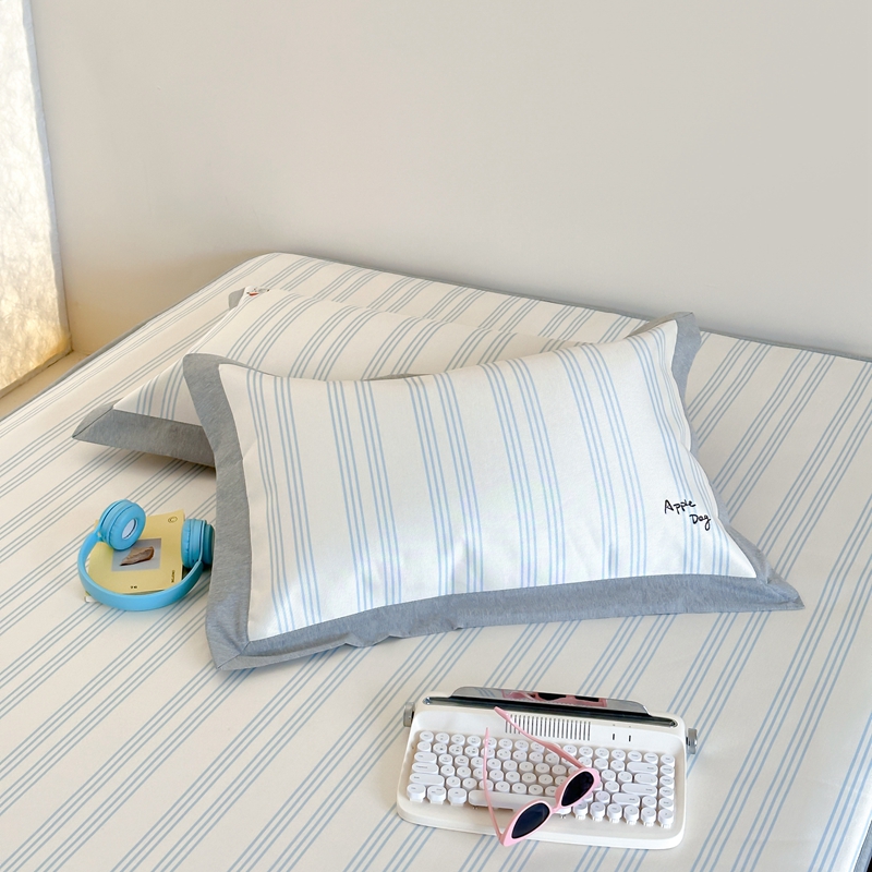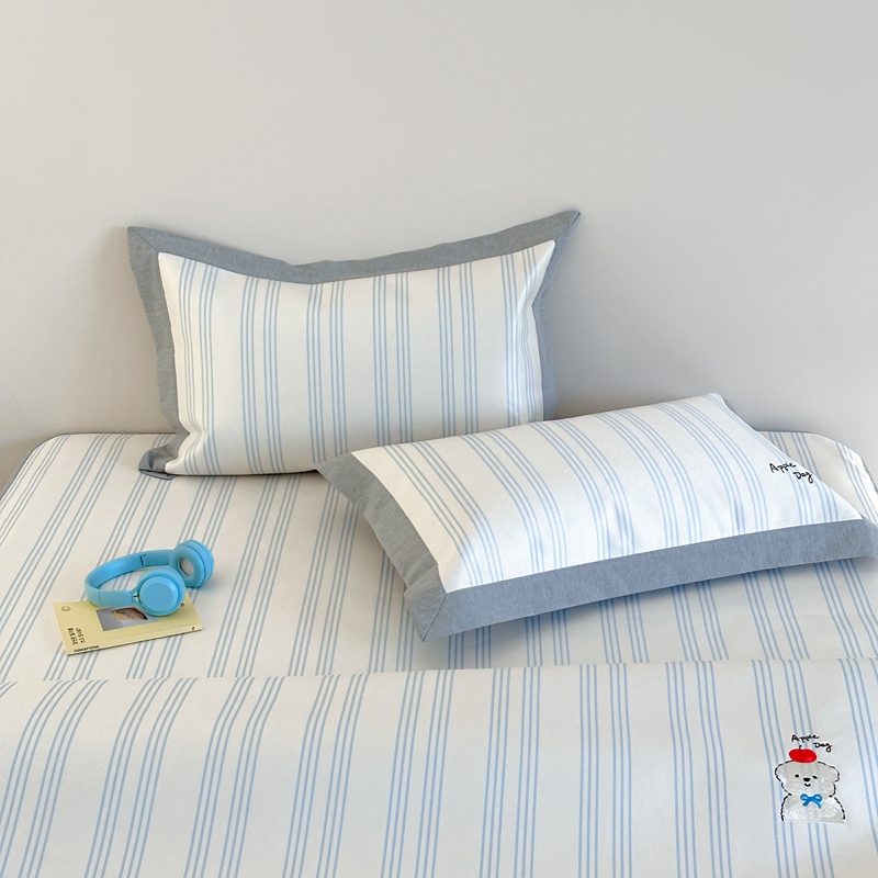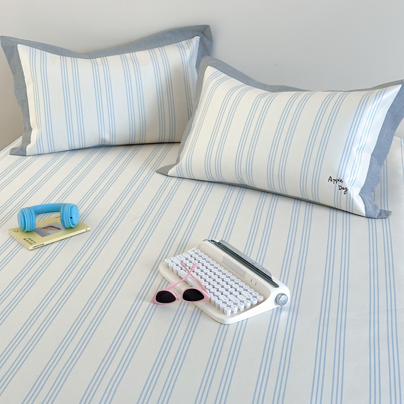(总)时年2022新款全棉40支13372ins条纹款四件套,复古钴蓝,复古奶绿