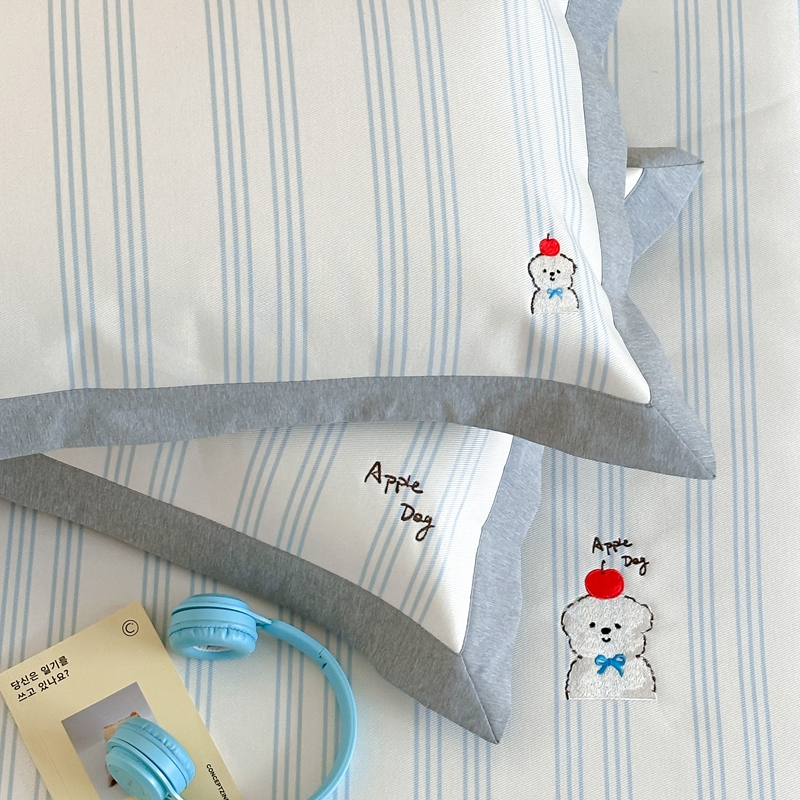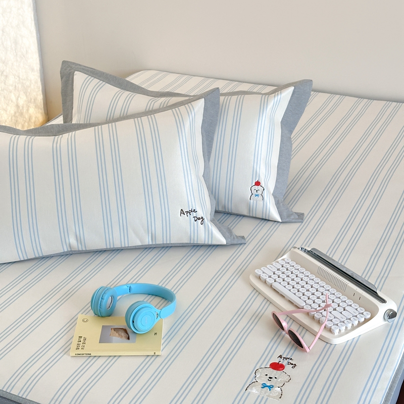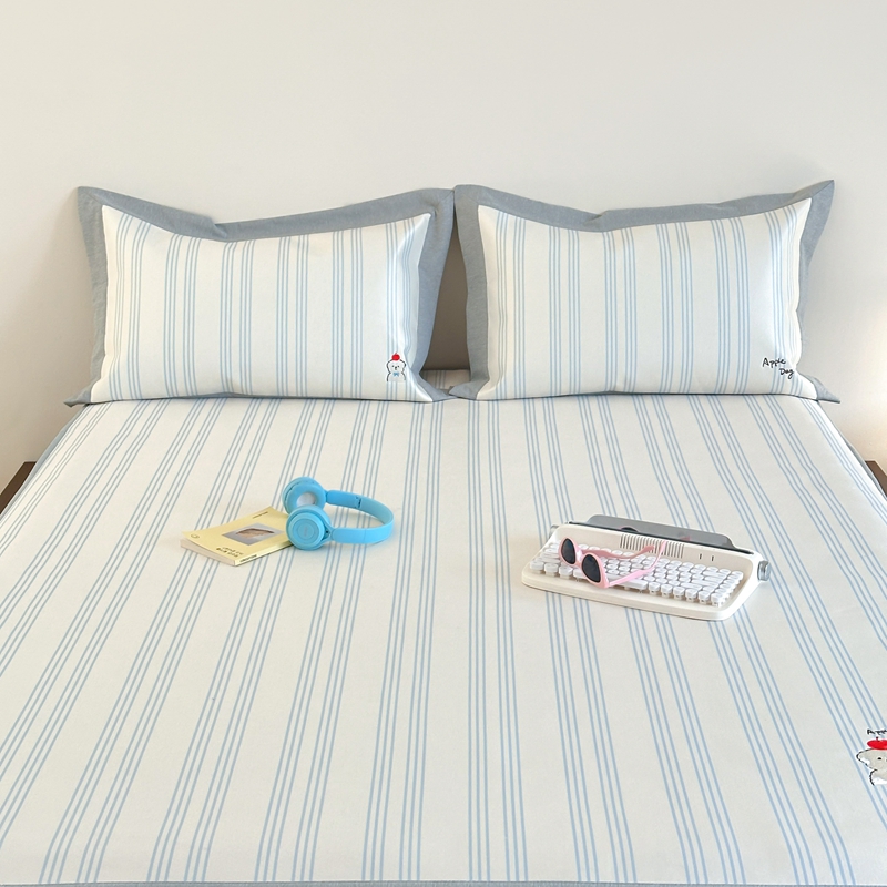 商品名称:时年家纺 2024新款条纹刺绣冰丝凉席--床笠款 床笠款-幸运汪