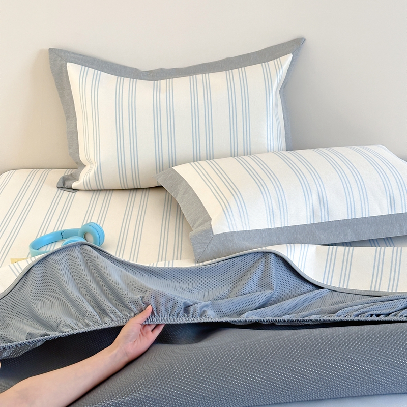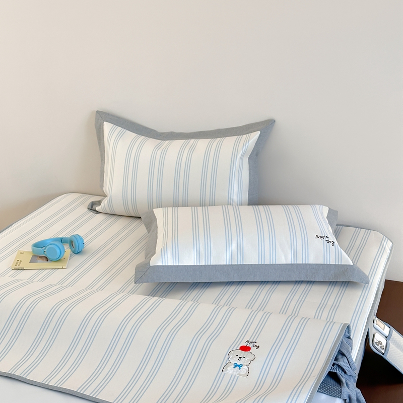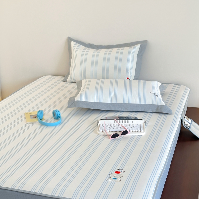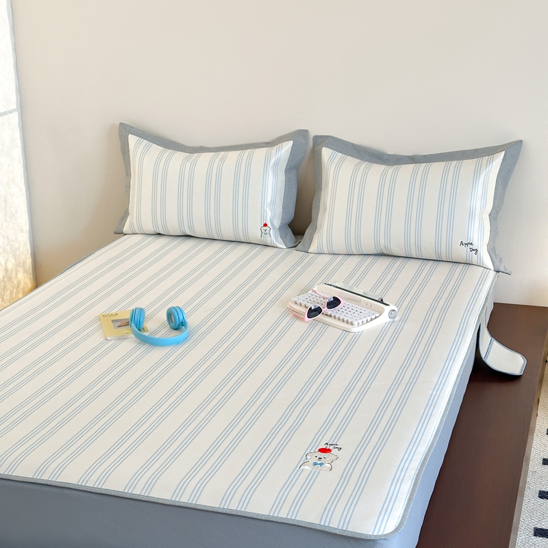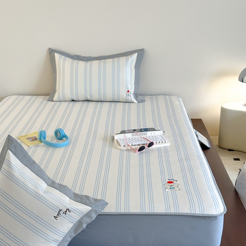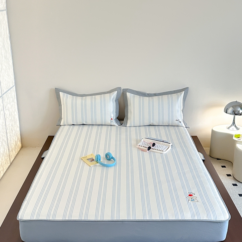 时年家纺 2024新款条纹刺绣冰丝凉席--床笠款 床笠款-幸运汪