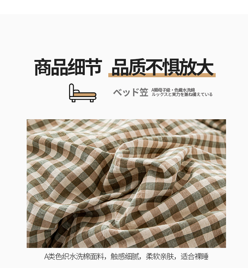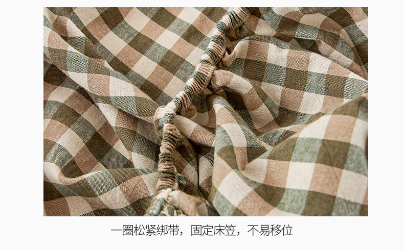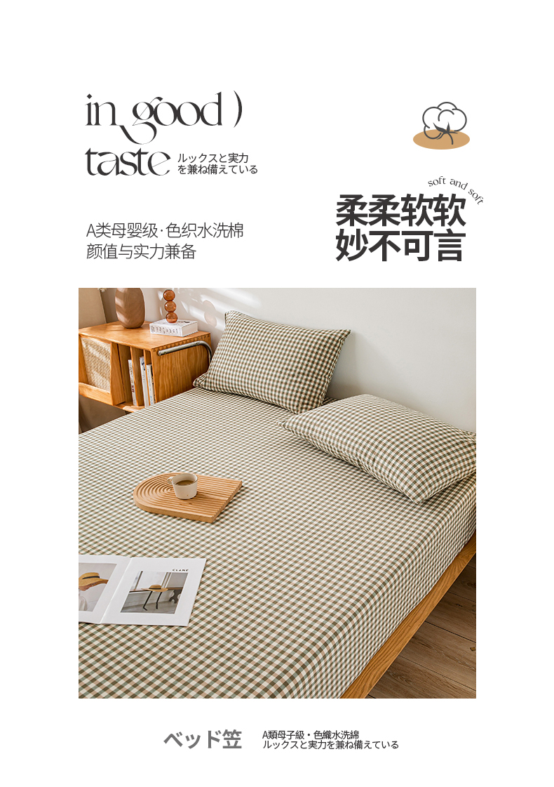 商品名称:萌飞 2024新款A类色织水洗棉床笠 绿小格