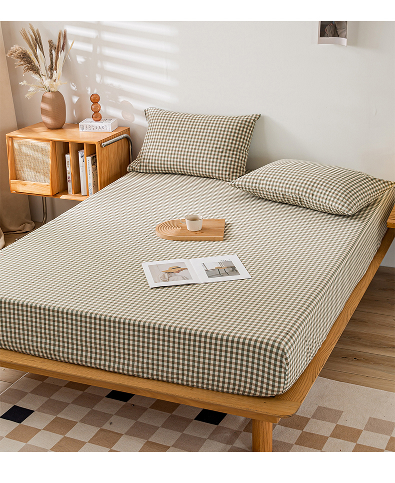 萌飞 2024新款A类色织水洗棉床笠 绿小格