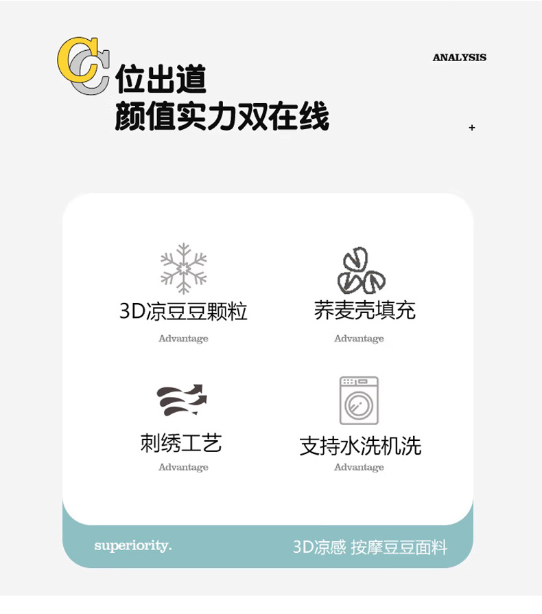 零下2度冰橙荞麦枕-水蓝32*52cm/只