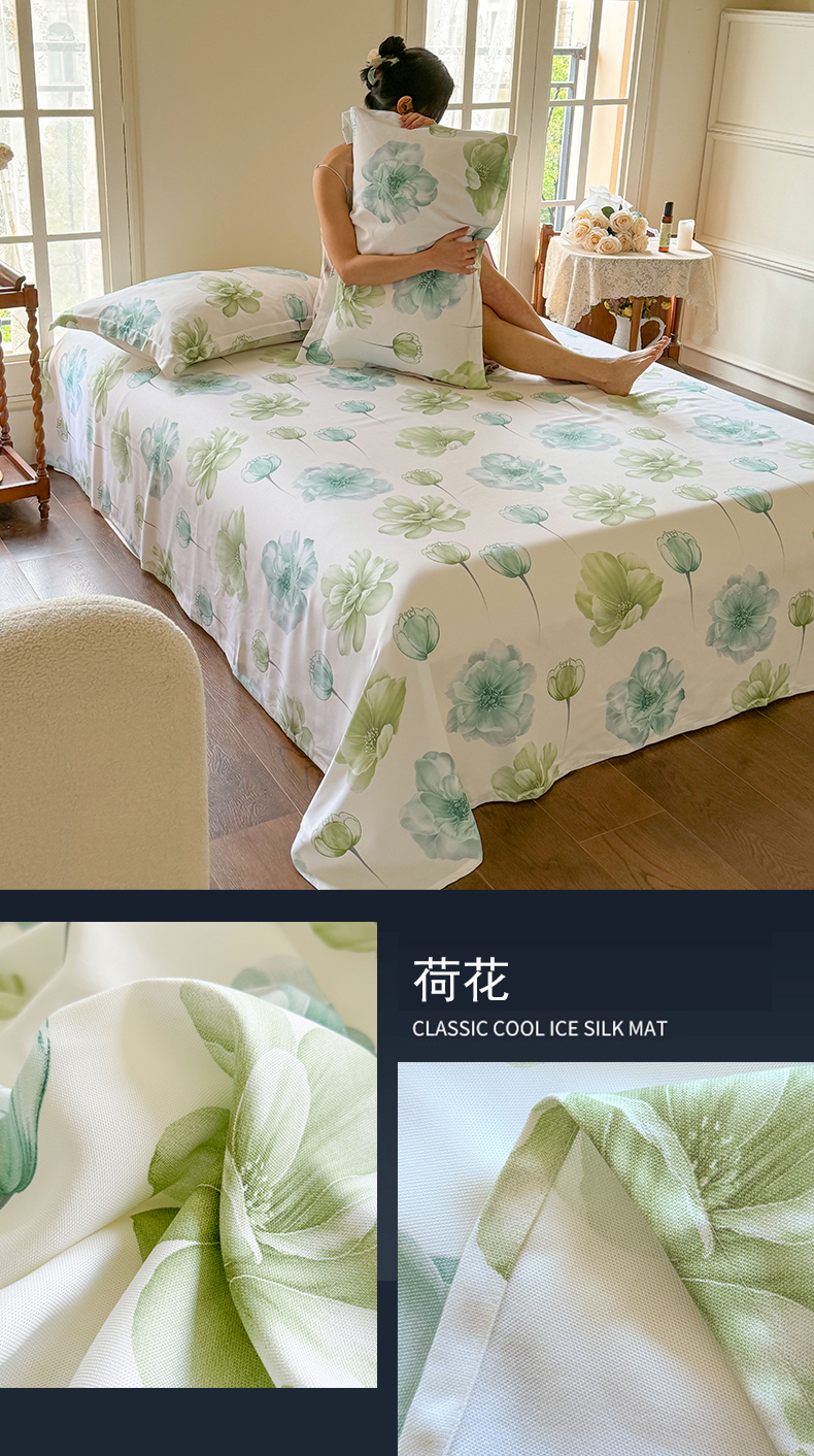 商品名称:麻依 2024新款竹纤维凉席三件套床单 荷花