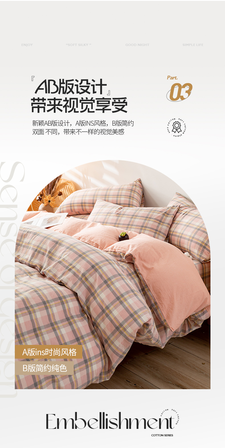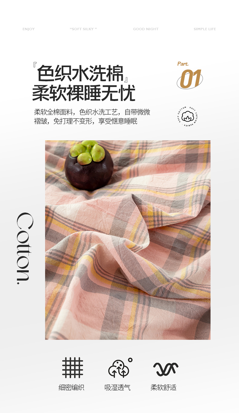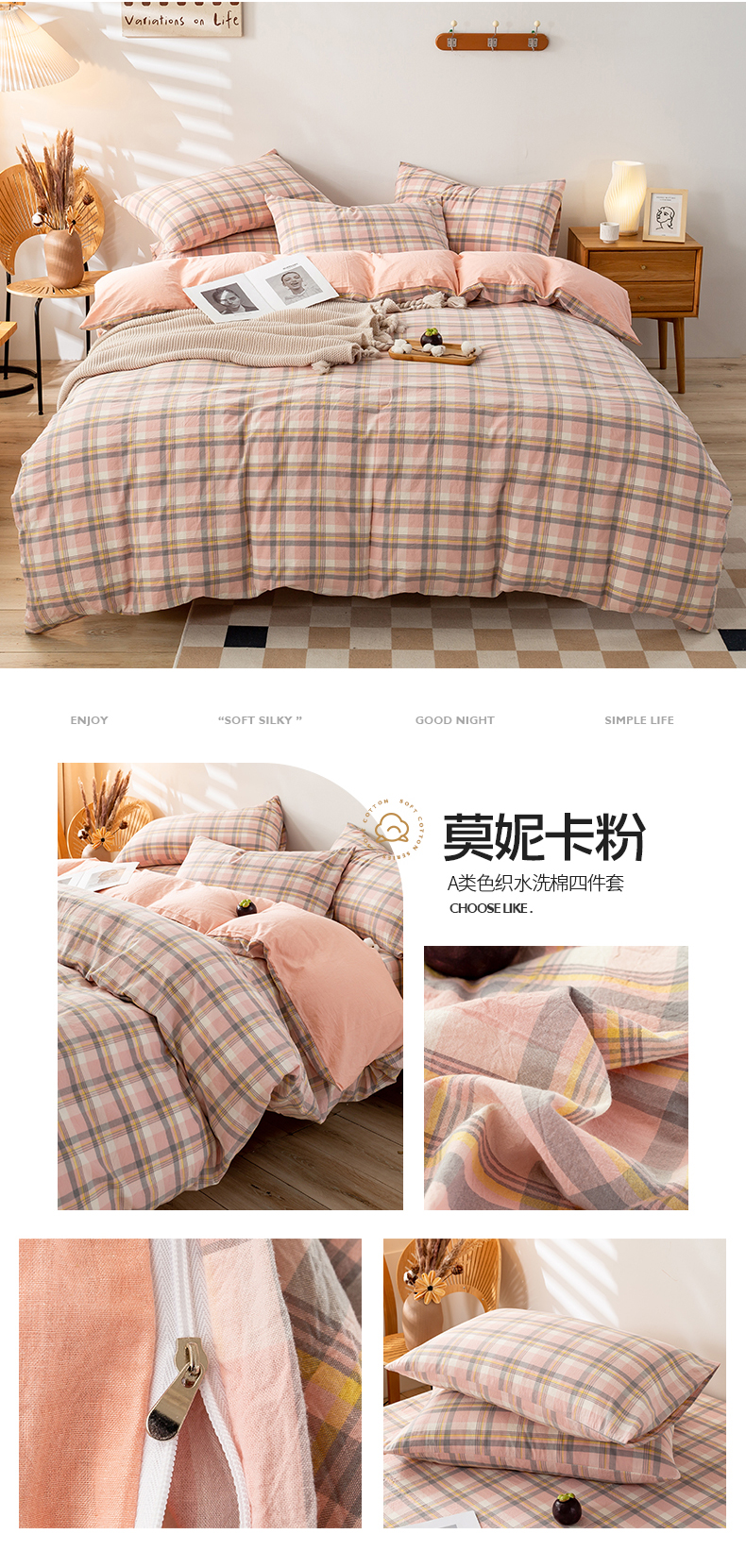 当前位置: 91家纺网 > 商品网购 > 床品套件 > 四件套 > 水洗棉四件套 > 九沐良品 新款A类色织水洗棉四件套 莫妮卡粉