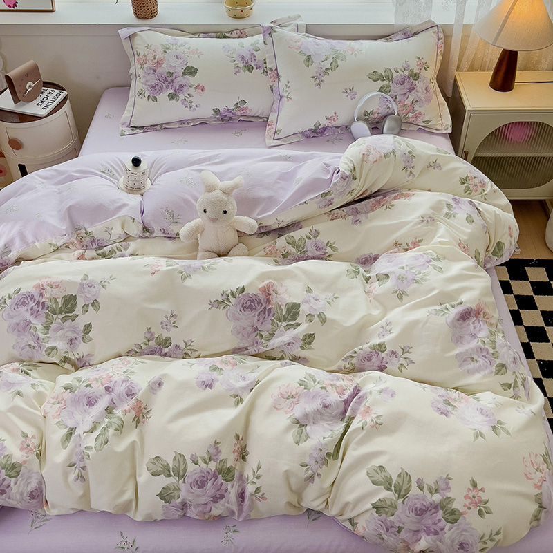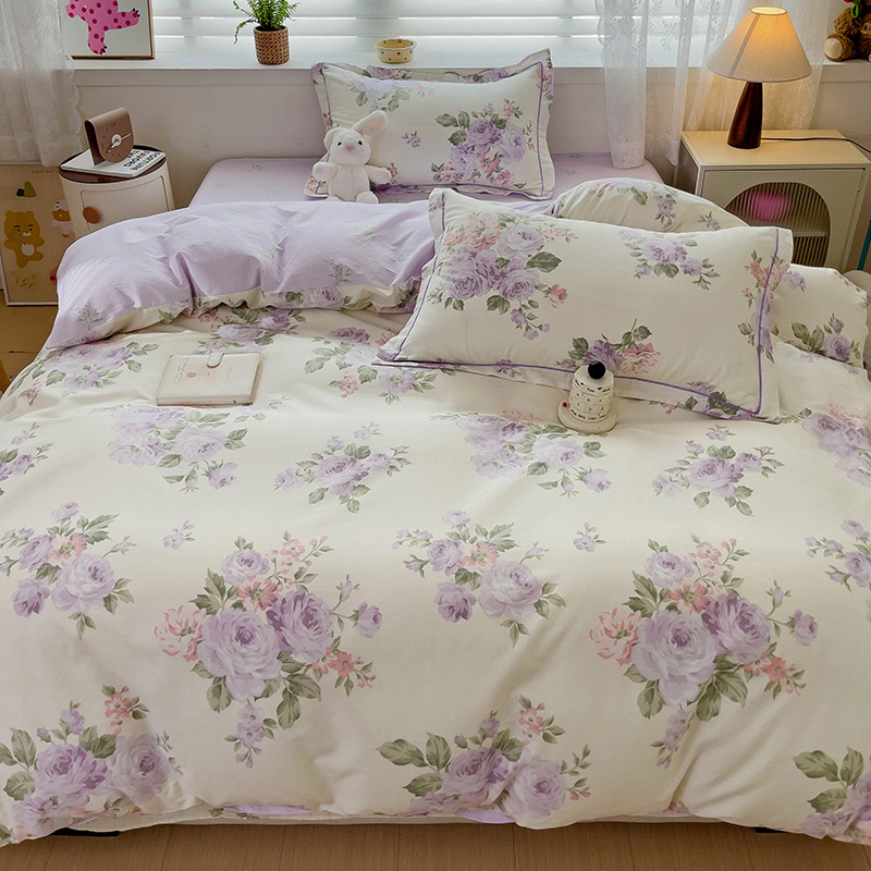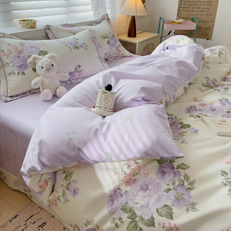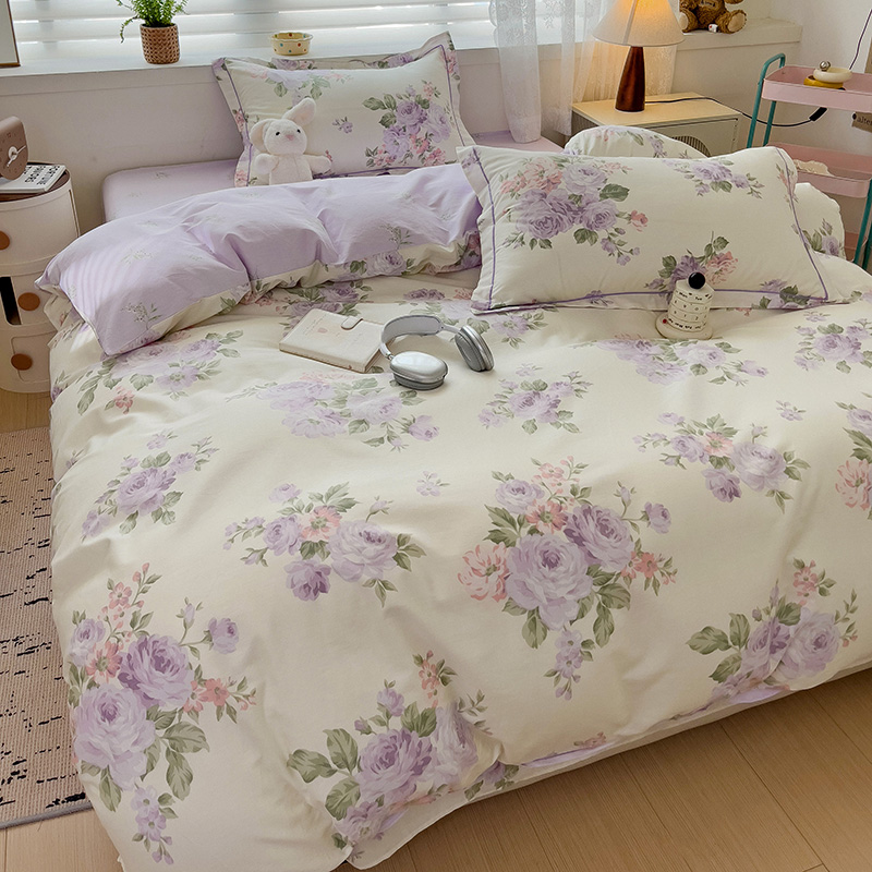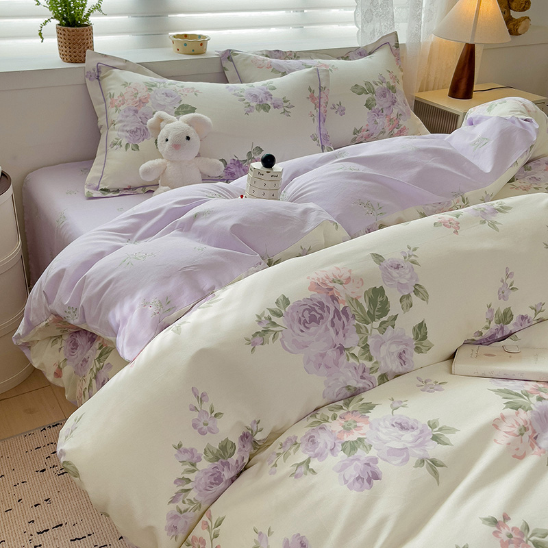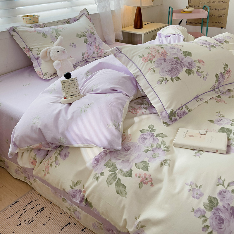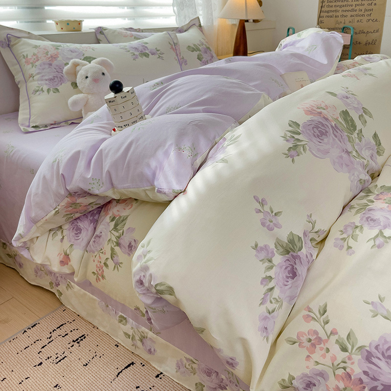乐童家纺 2024新款直播爆款13070纯棉印花吊边款一字绣四件套第六波 温婉花季