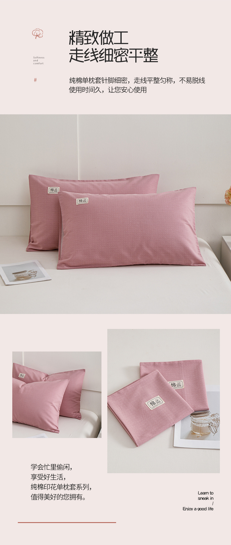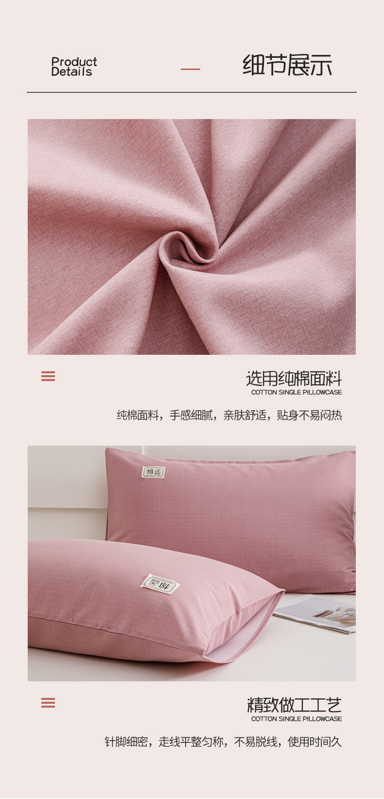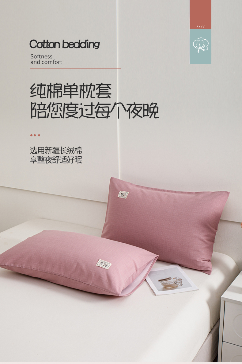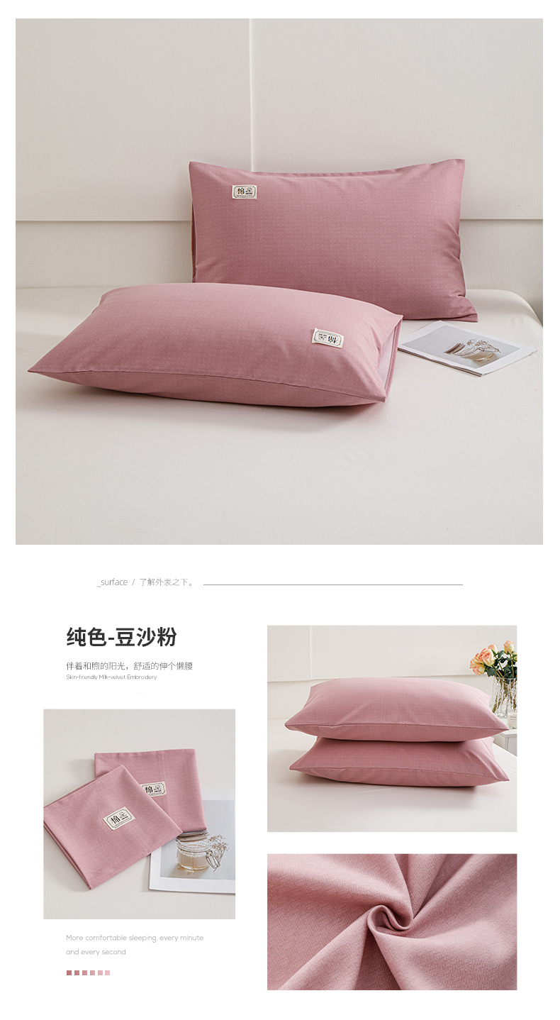 商品名称:宝时兰 2024新款纯色单枕套全棉加厚生态喷气磨毛纯棉口袋枕套 纯色-豆沙粉