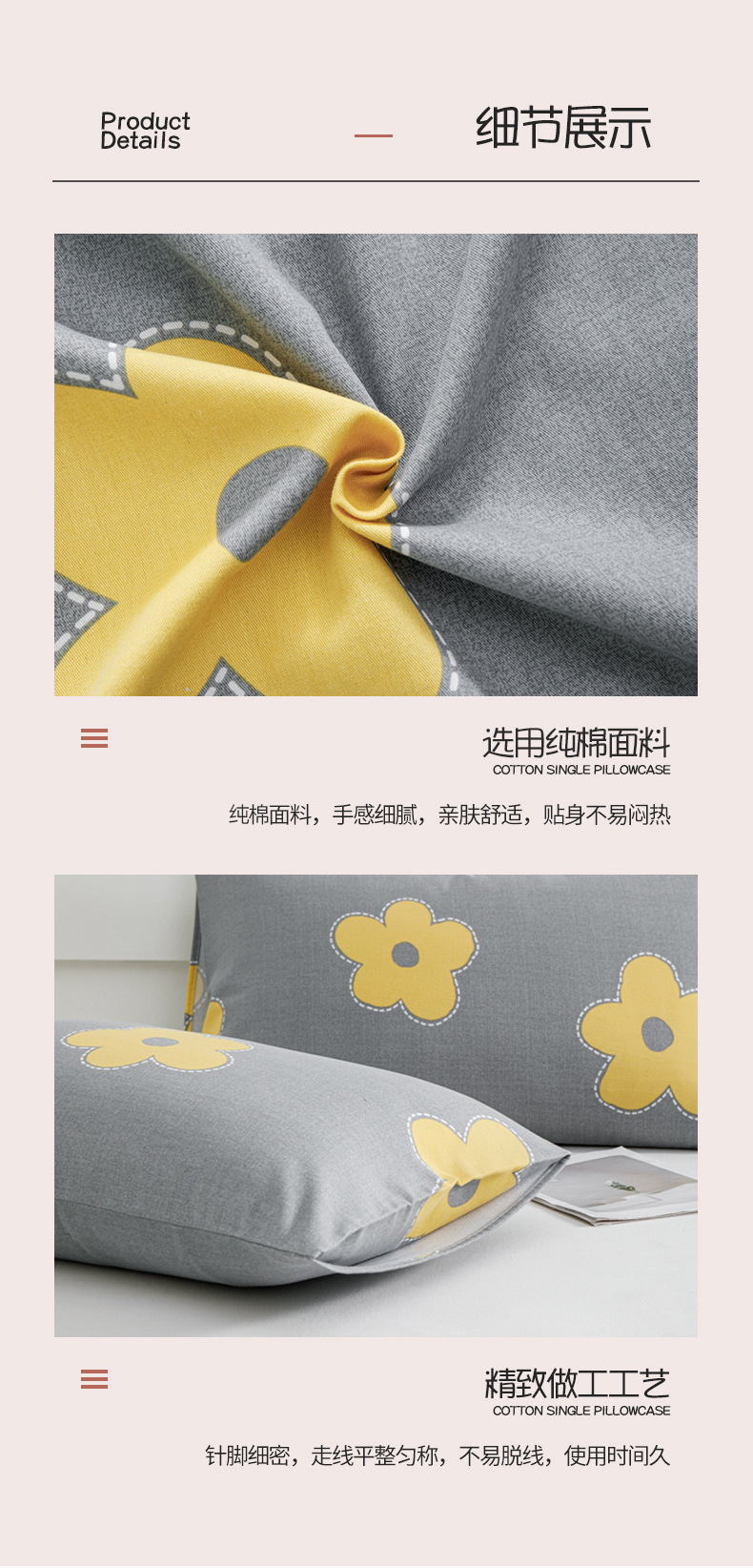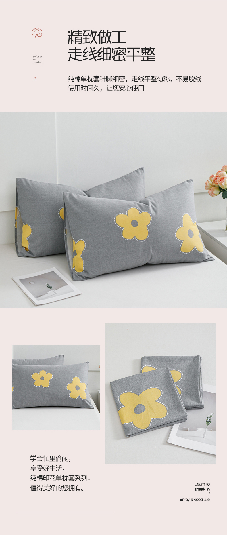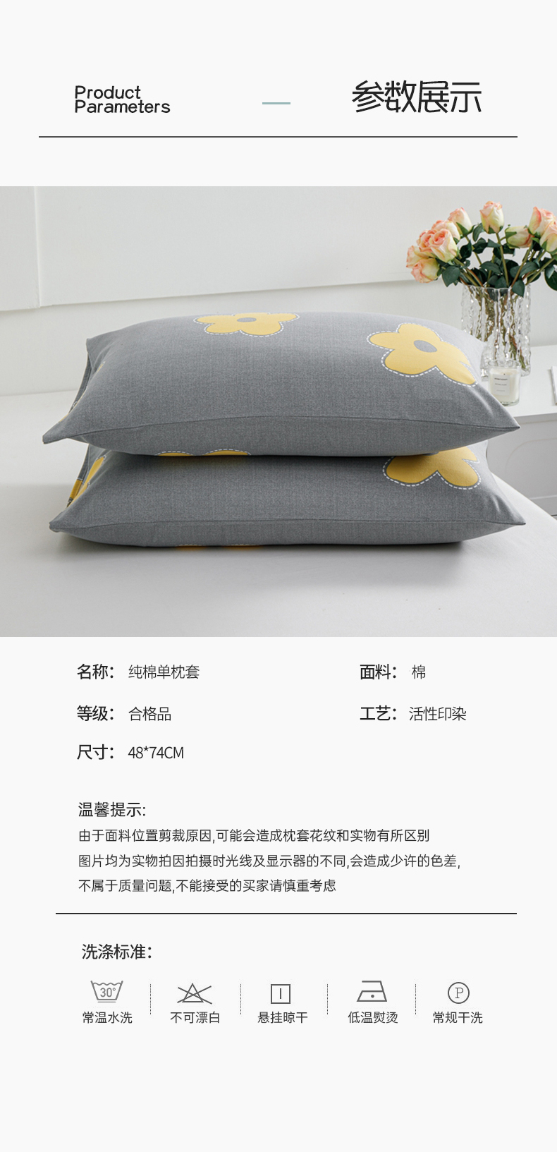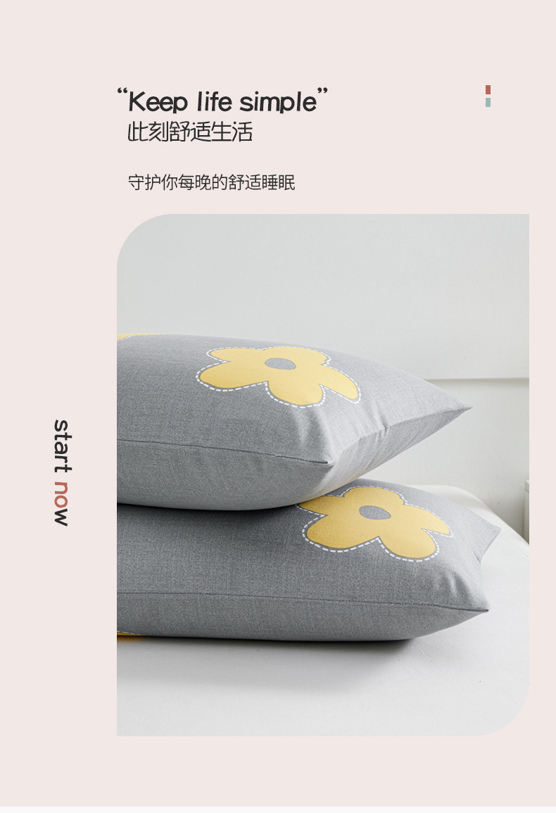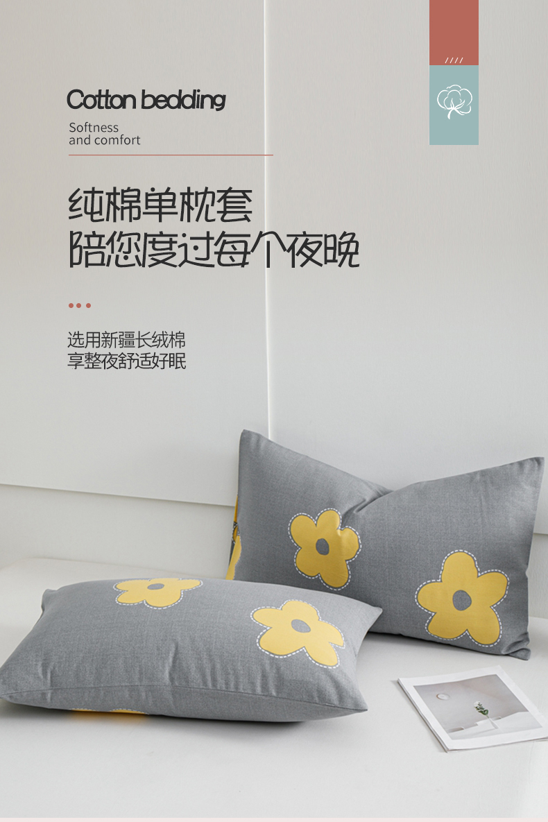 商品名称:宝时兰 2024新款纯色单枕套全棉加厚生态喷气磨毛纯棉口袋枕套 印花- 花密灰