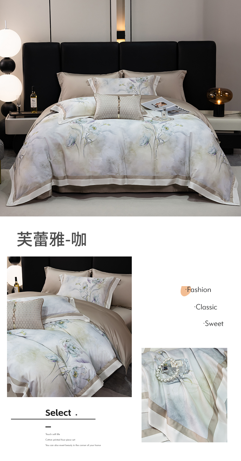 瑞米家居 2024新款天丝棉数码印花四件套 芙蕾雅-咖