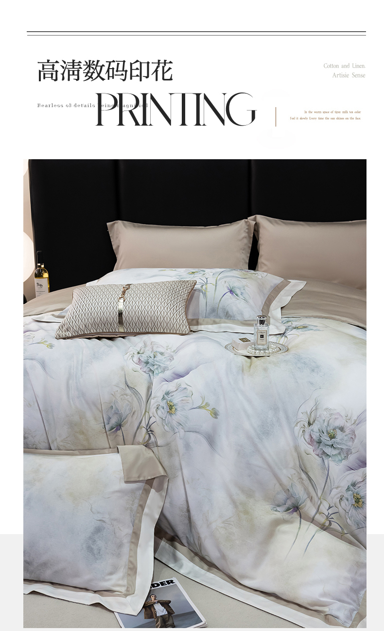 商品名称:瑞米家居 2024新款天丝棉数码印花四件套 芙蕾雅-咖