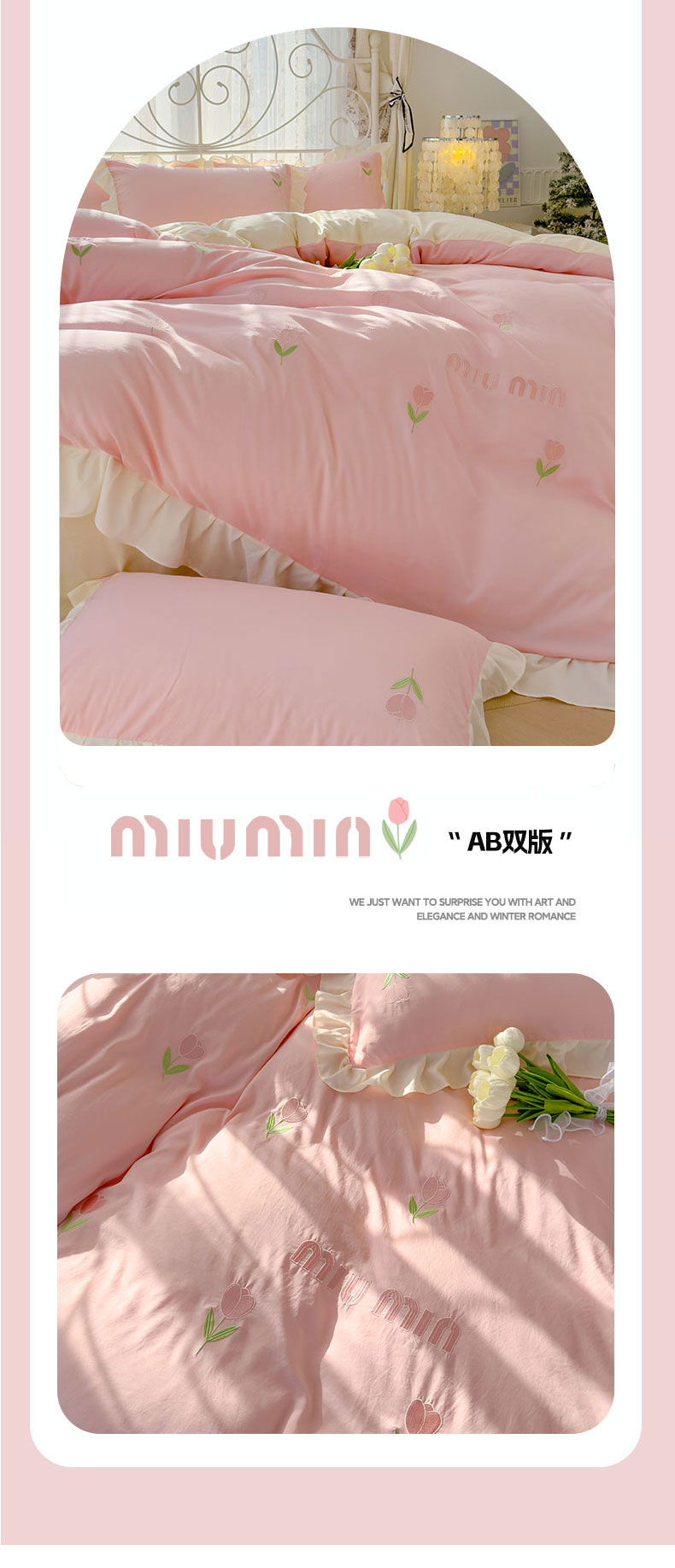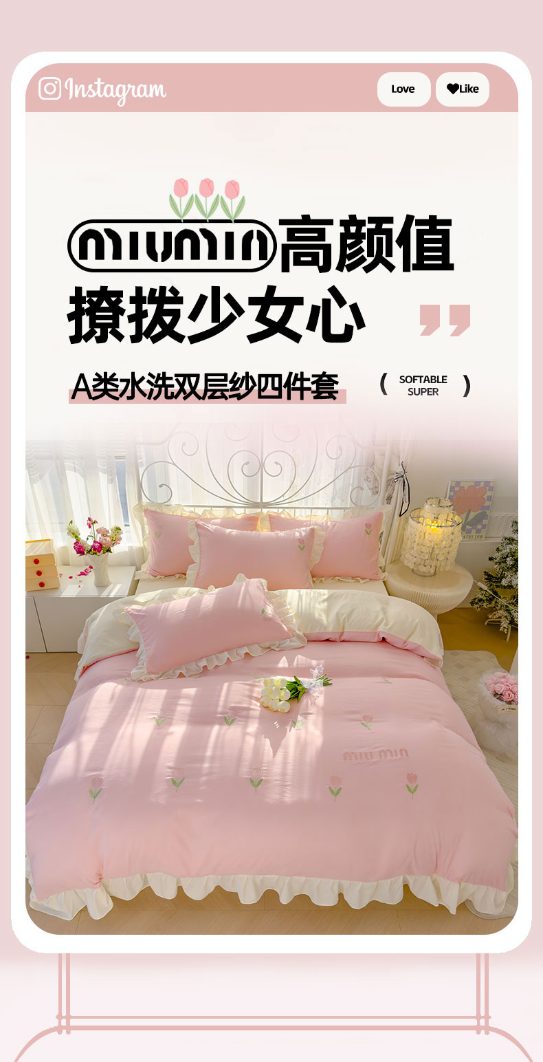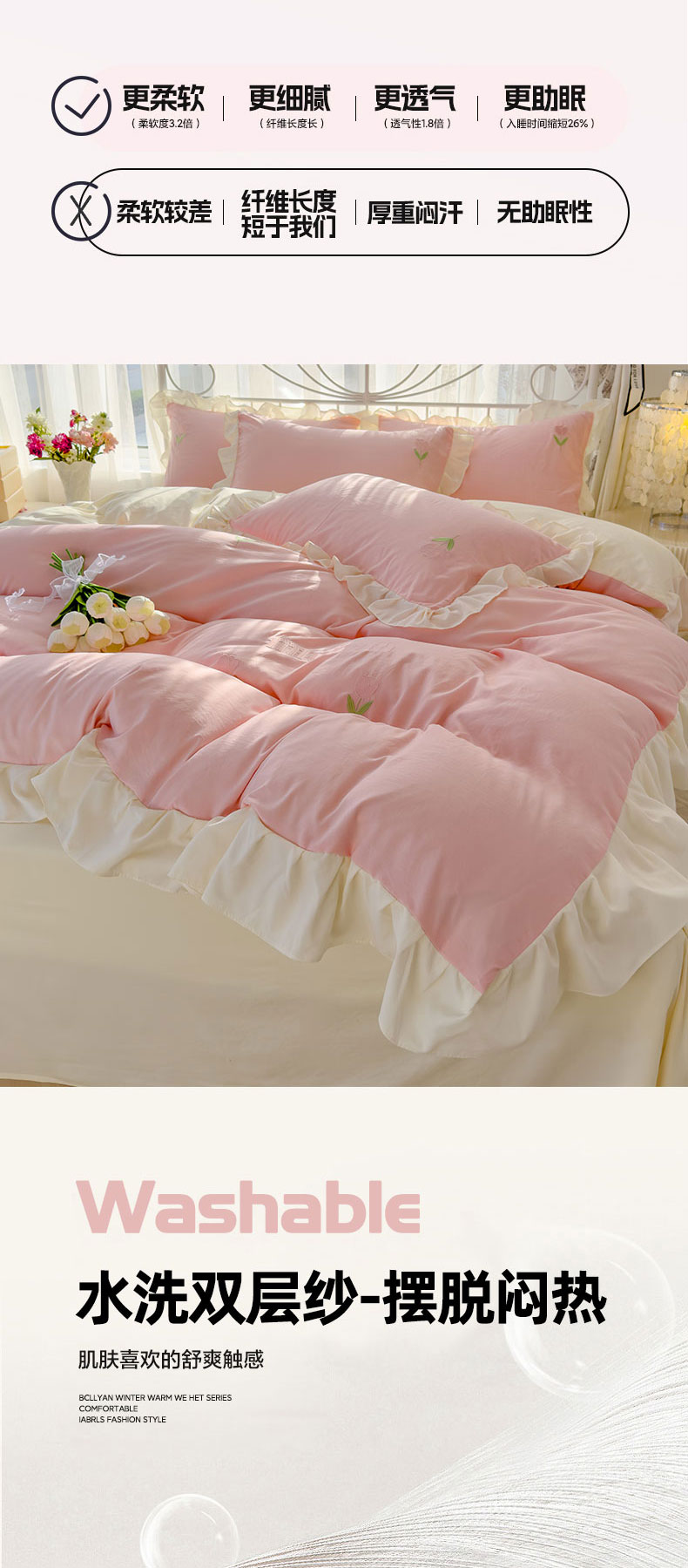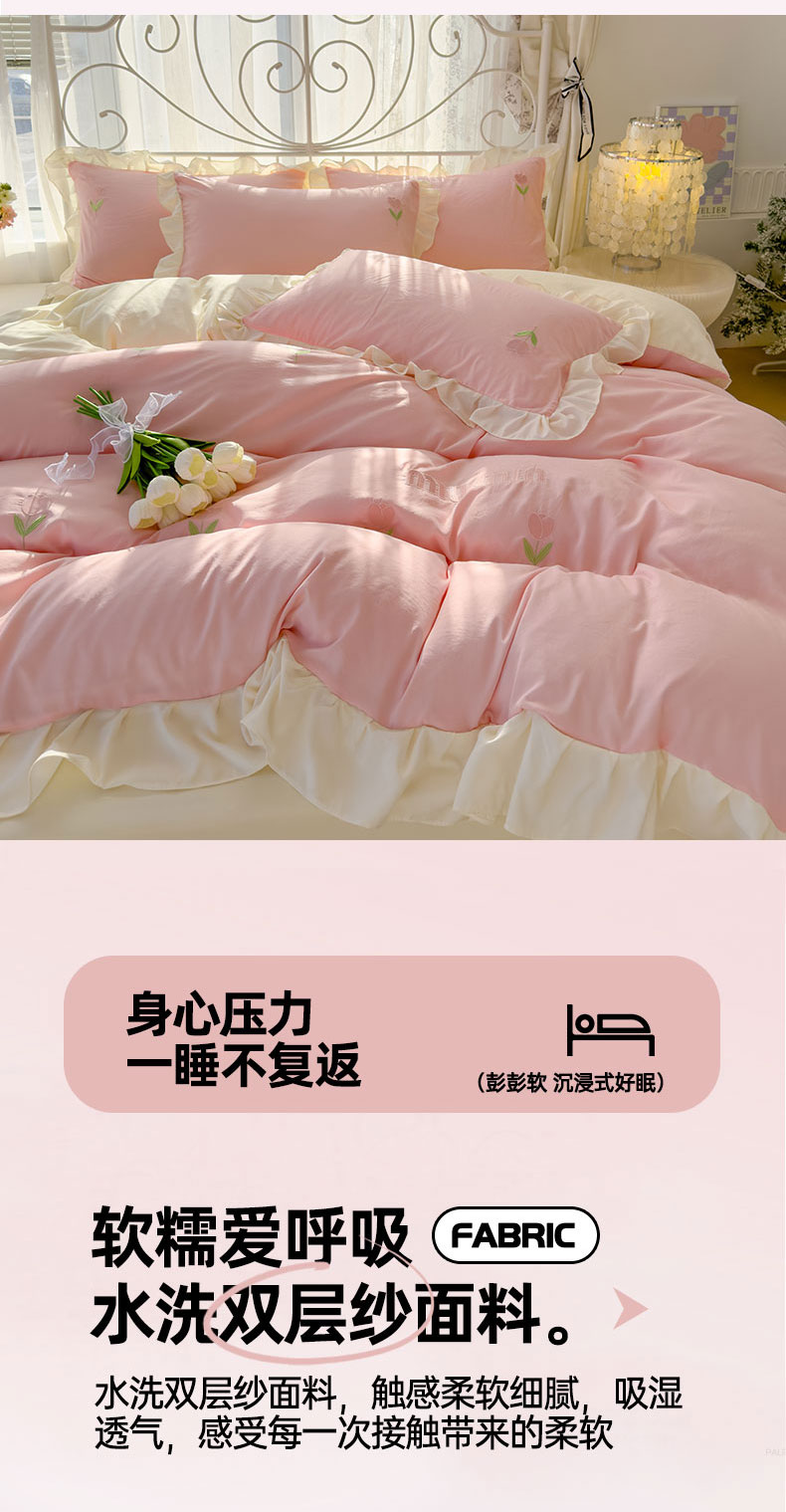 当前位置: 91家纺网 > 商品网购 > 床品套件 > 四件套 > 其它四件套 > 灰鲸 2025新款水洗双层纱miumin郁金香刺绣四件套 miumin郁金香-仙粉拼奶黄