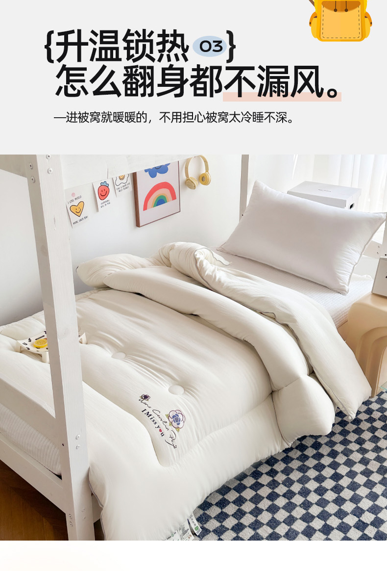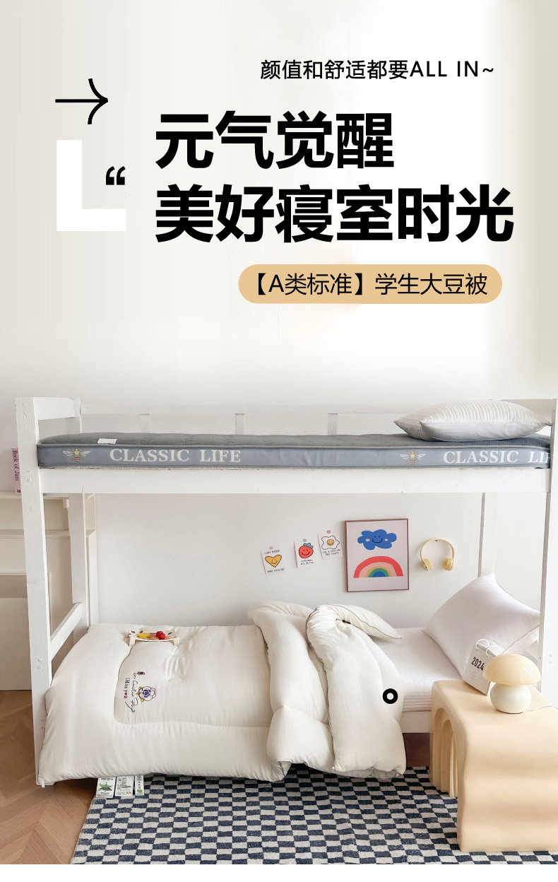 (总)招财狼家纺 2025新款学生大礼包三件套被子床垫枕芯,白色,灰色