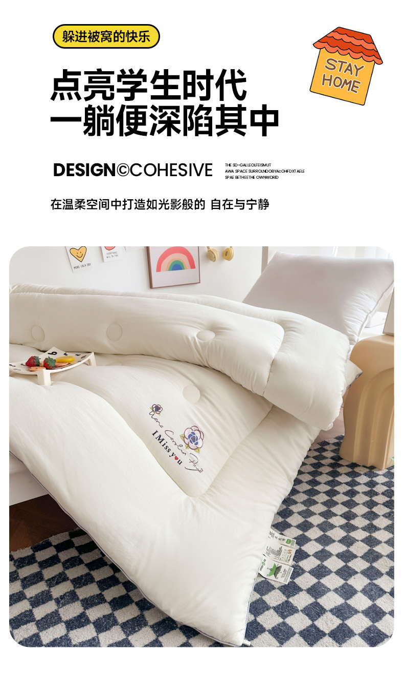 • 91家纺网 家纺一手货源 找家纺 (总)招财狼家纺 2025新款学生大礼包三件套被子床垫枕芯,白色,灰色