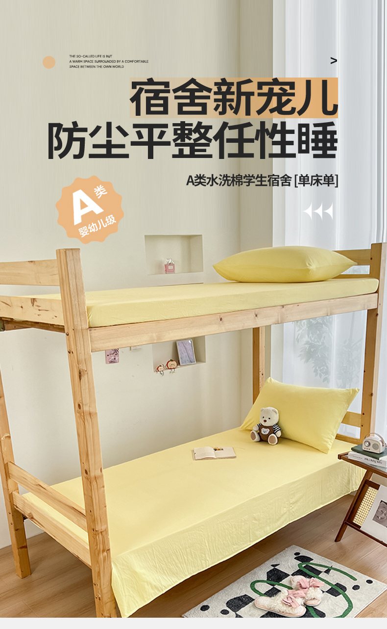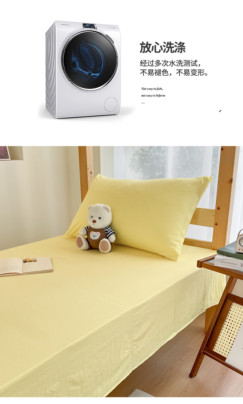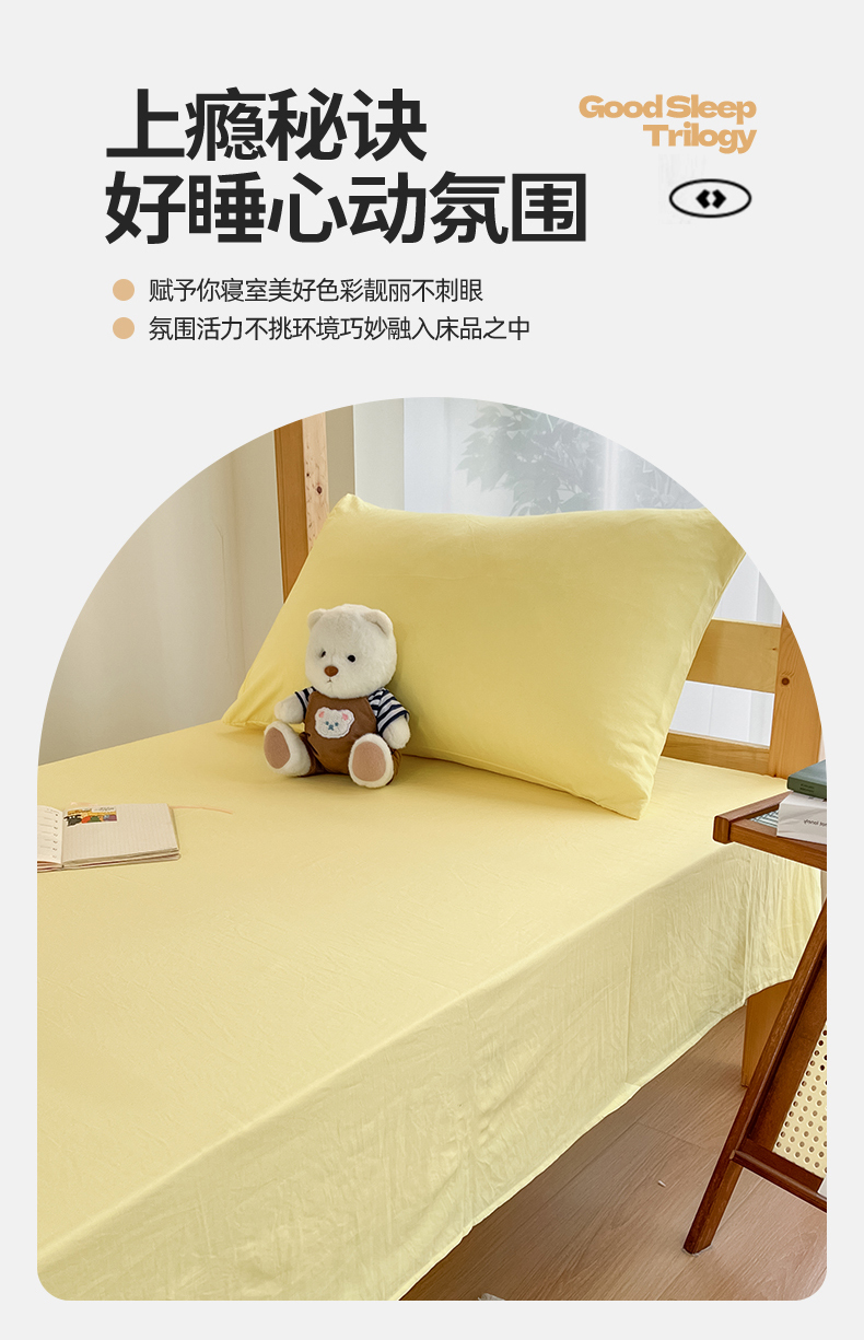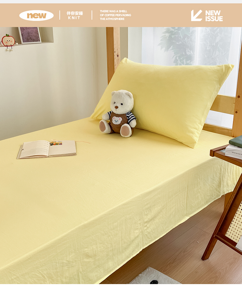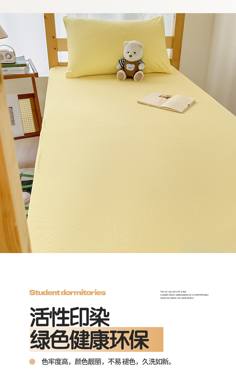 • 91家纺网 家纺一手货源 找家纺 多品 2024新款水洗棉皱皱纱学生宿舍单床单 奶黄