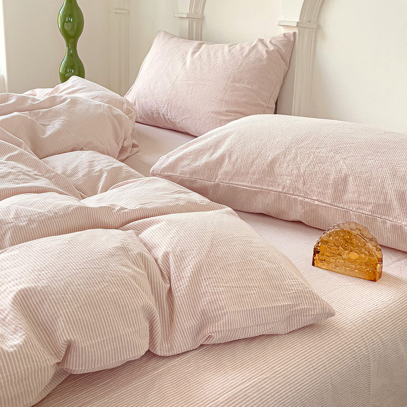呗旺鹿 2024新款A类40支全棉色织水洗棉四件套全棉四件套纯棉四件套无印风 魅力条纹粉