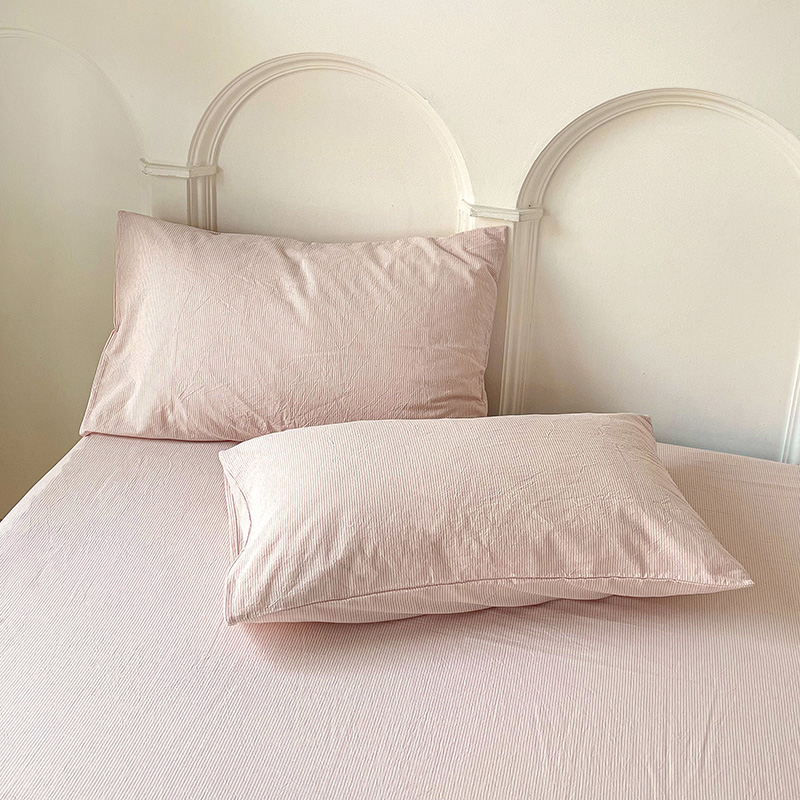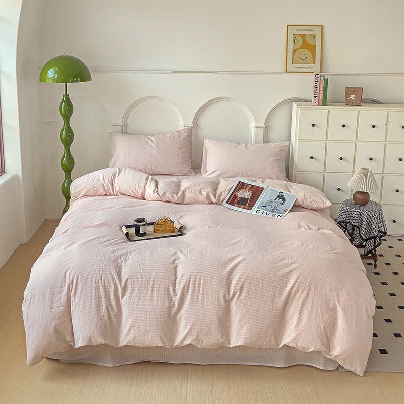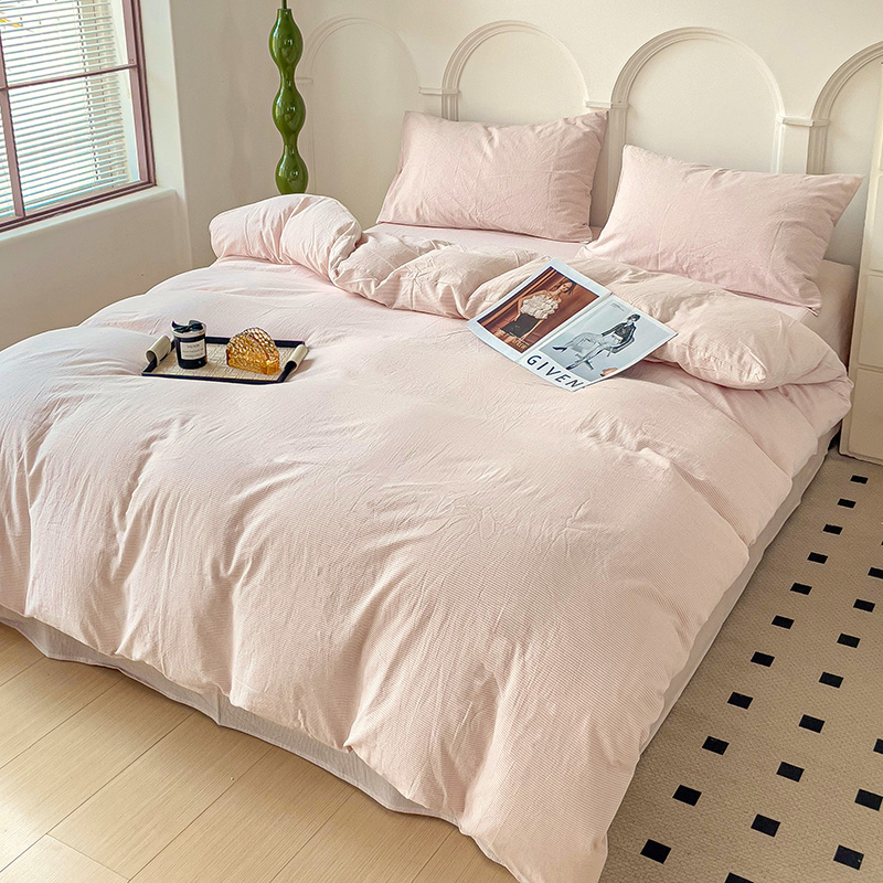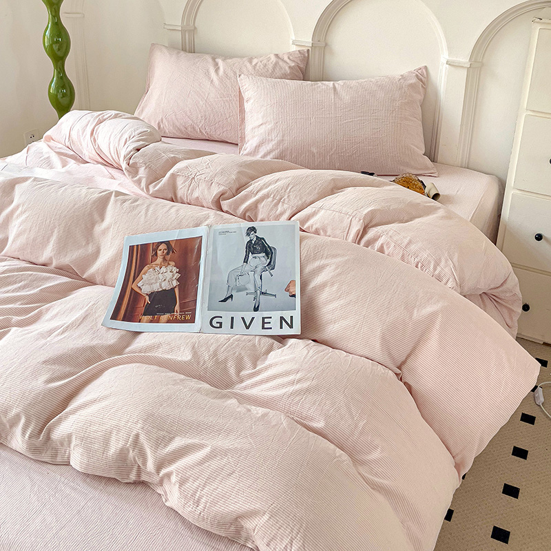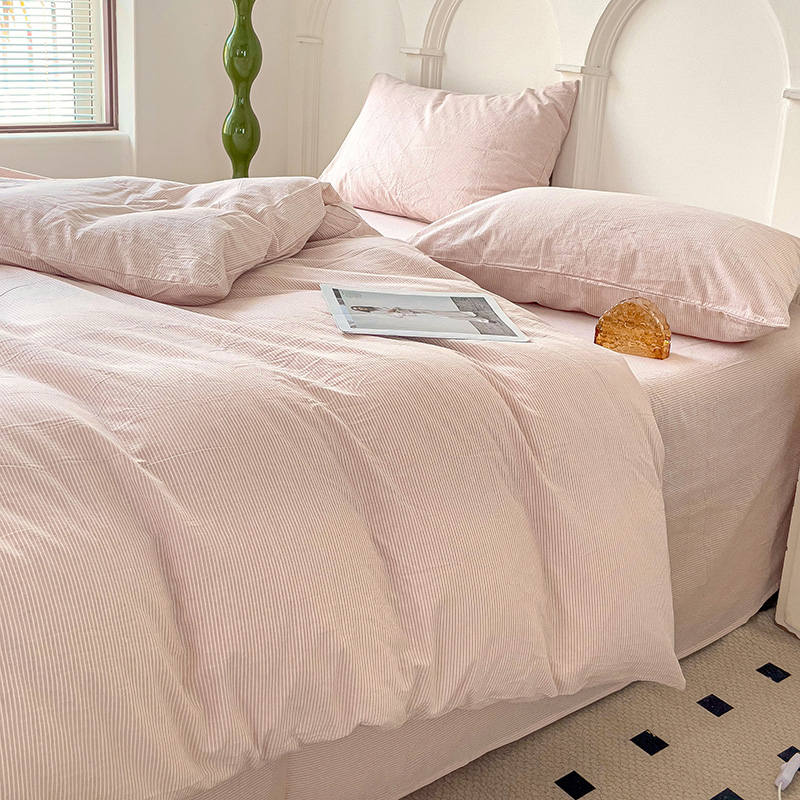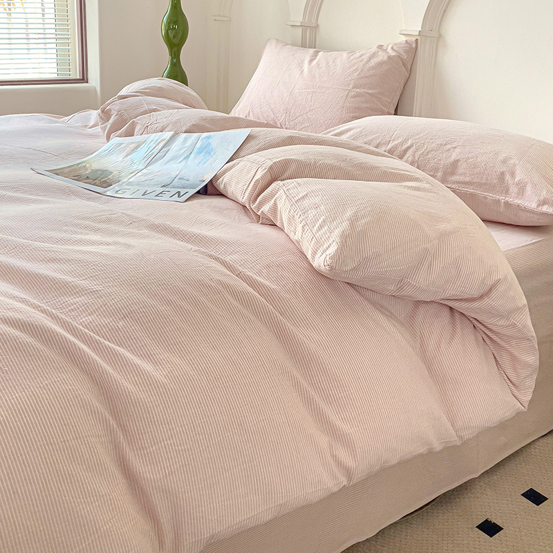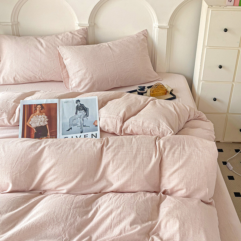 商品名称:呗旺鹿 2024新款A类40支全棉色织水洗棉四件套全棉四件套纯棉四件套无印风 魅力条纹粉