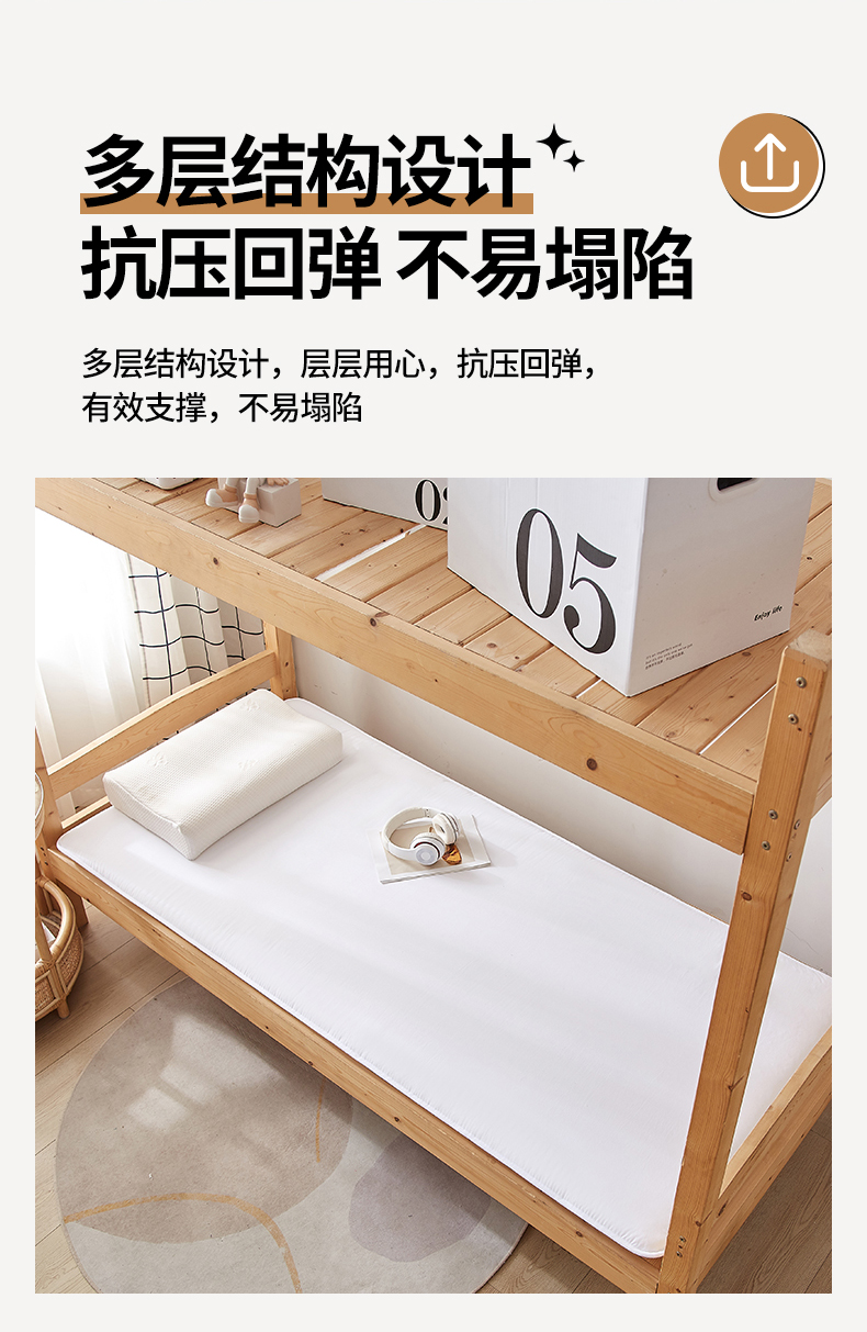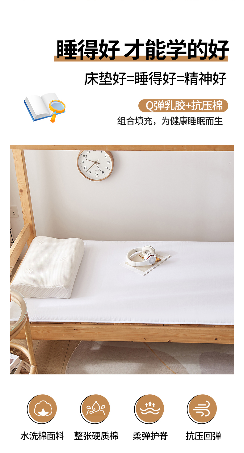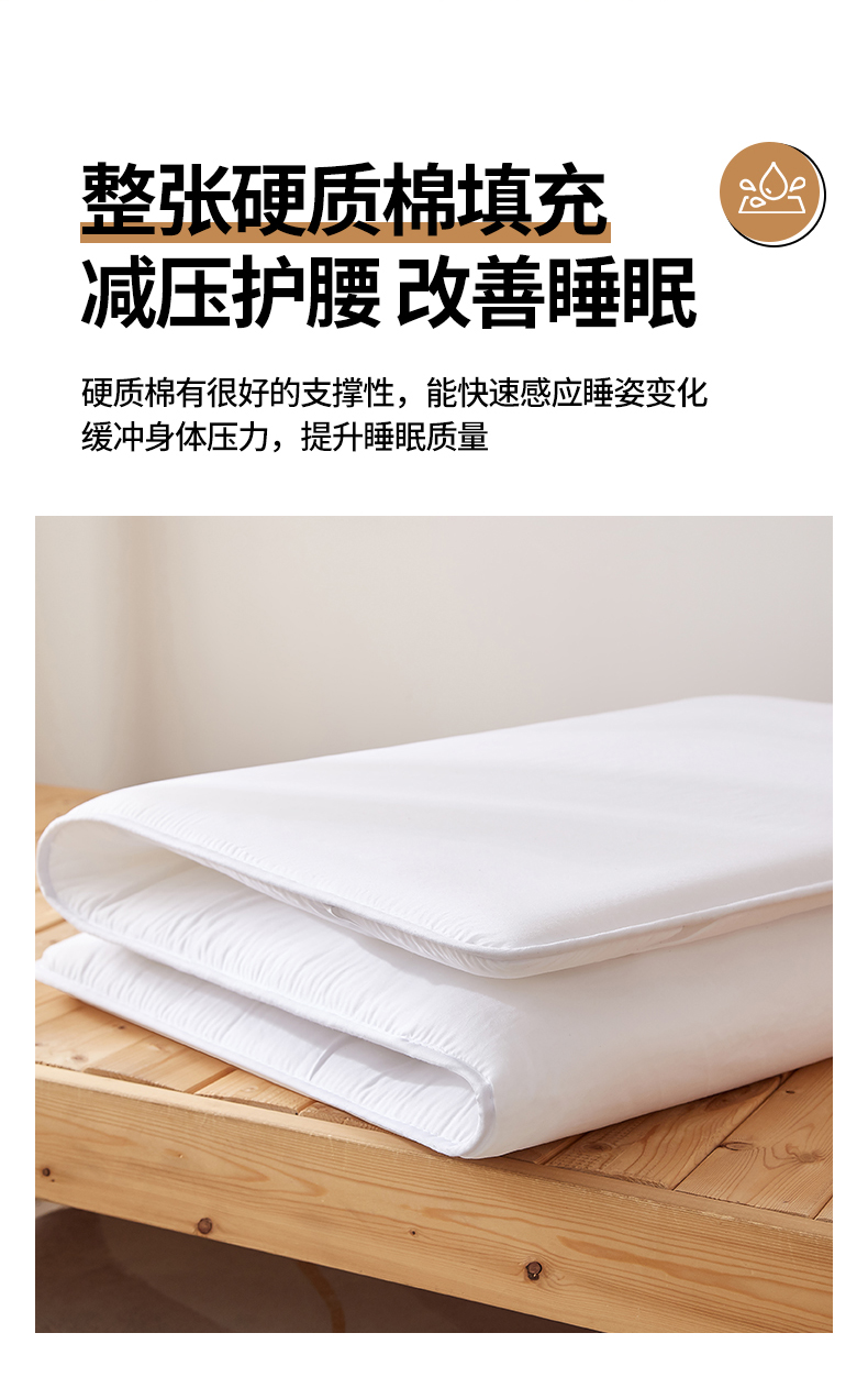 商品名称:招财狼 2024新款水洗棉硬质棉学生床垫 白色