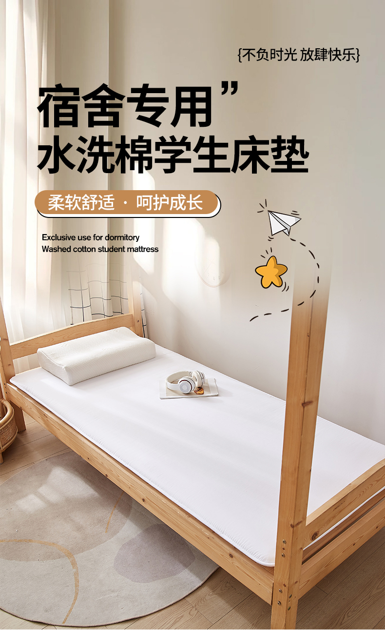 招财狼 2024新款水洗棉硬质棉学生床垫 白色