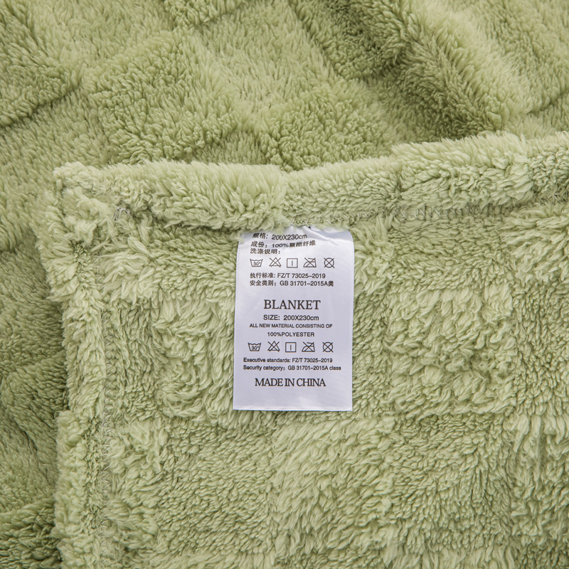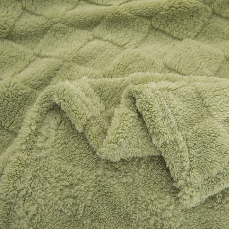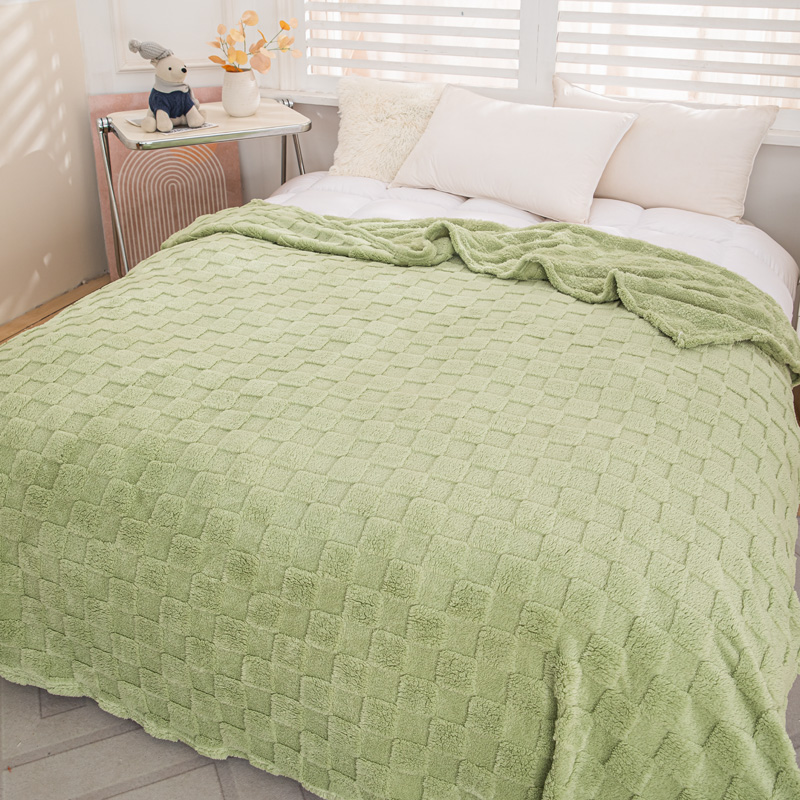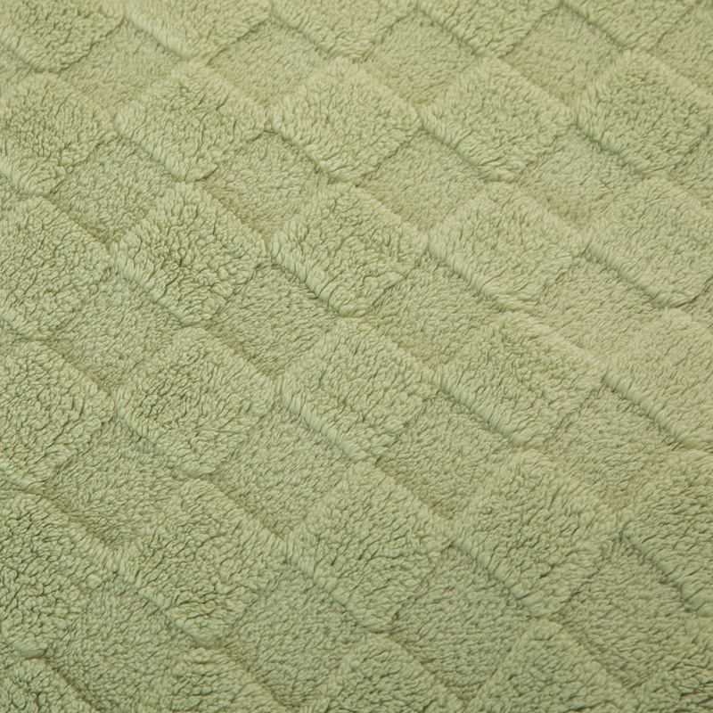商品名称:丹本家纺 2025新款塔肤绒跨境双面提花面包格加厚毛毯盖毯 茶绿