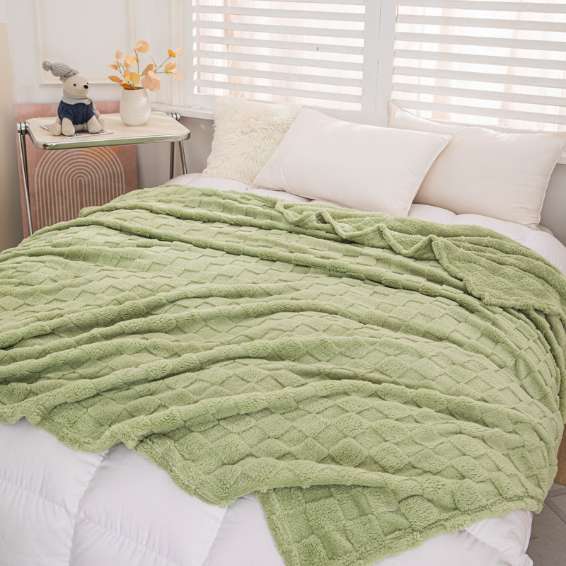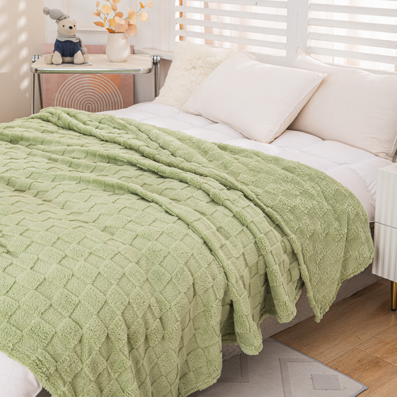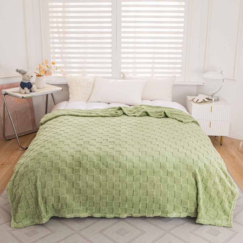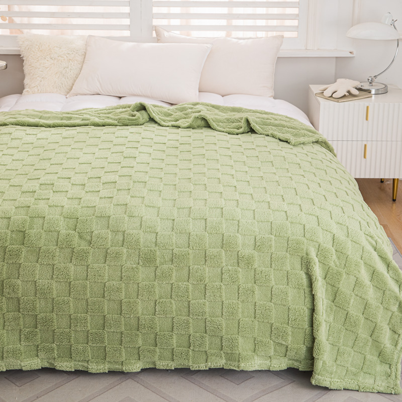 丹本家纺 2025新款塔肤绒跨境双面提花面包格加厚毛毯盖毯 茶绿