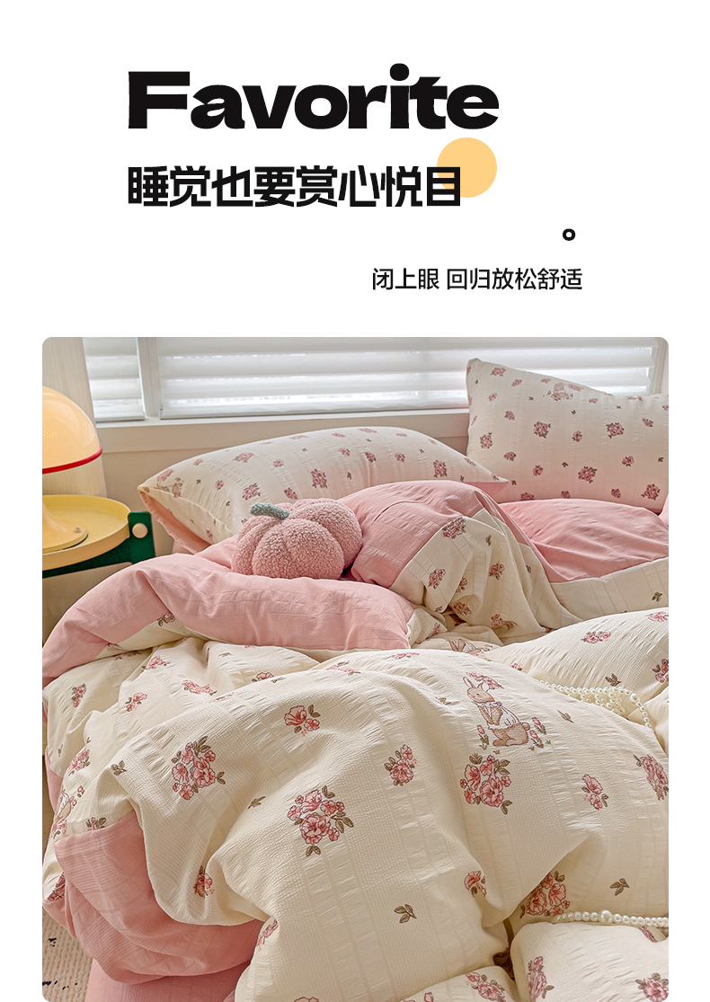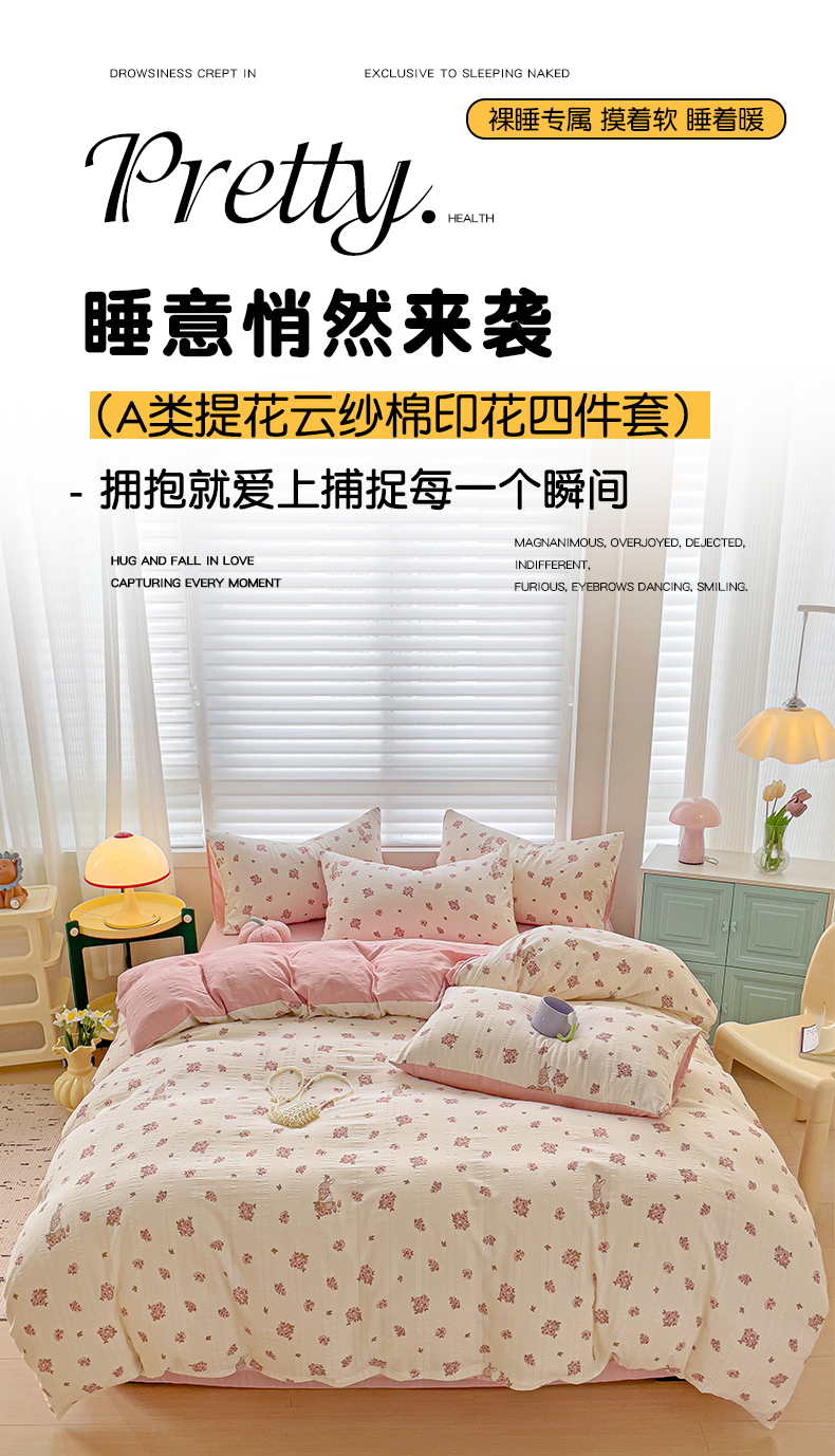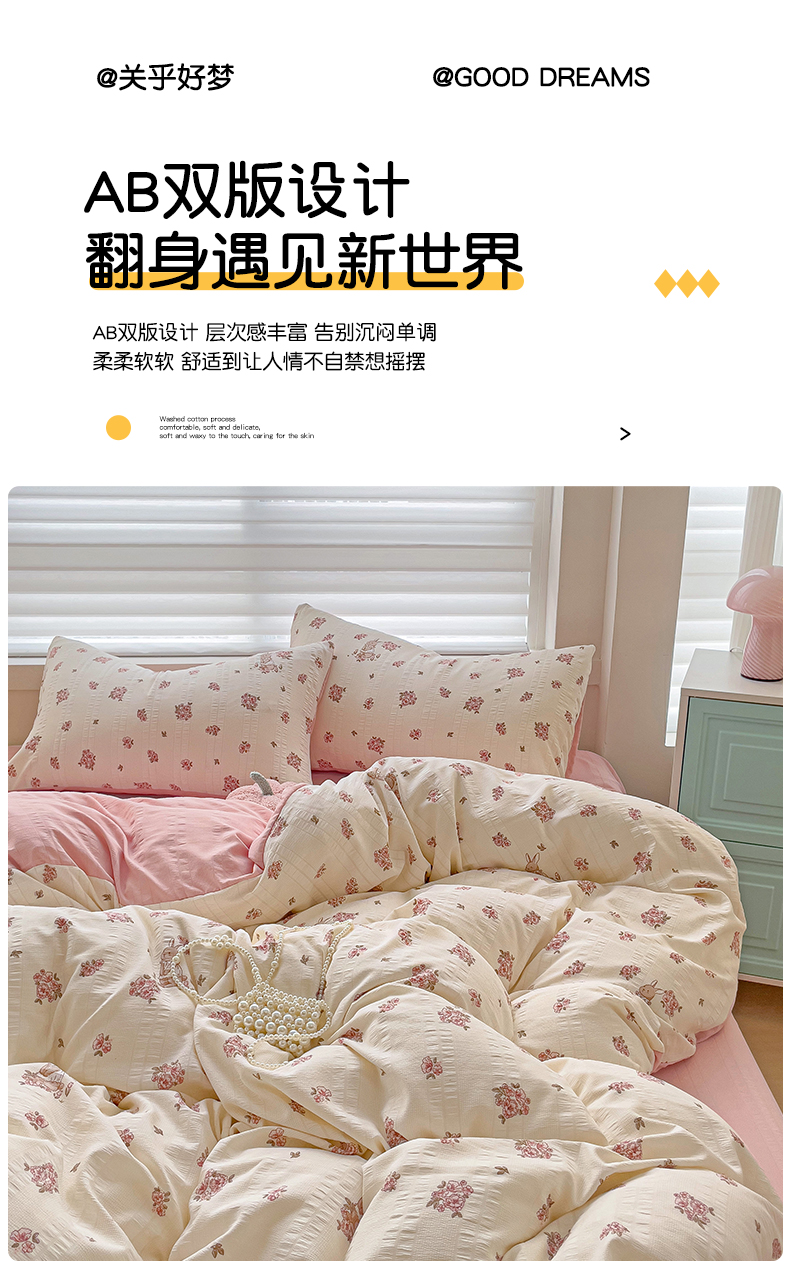 当前位置: 91家纺网 > 商品网购 > 床品套件 > 四件套 > 其它四件套 > 优选良品 2025新款有氧提花云纱棉圆角吊边工艺款四件套学生三件套 粉黛落樱