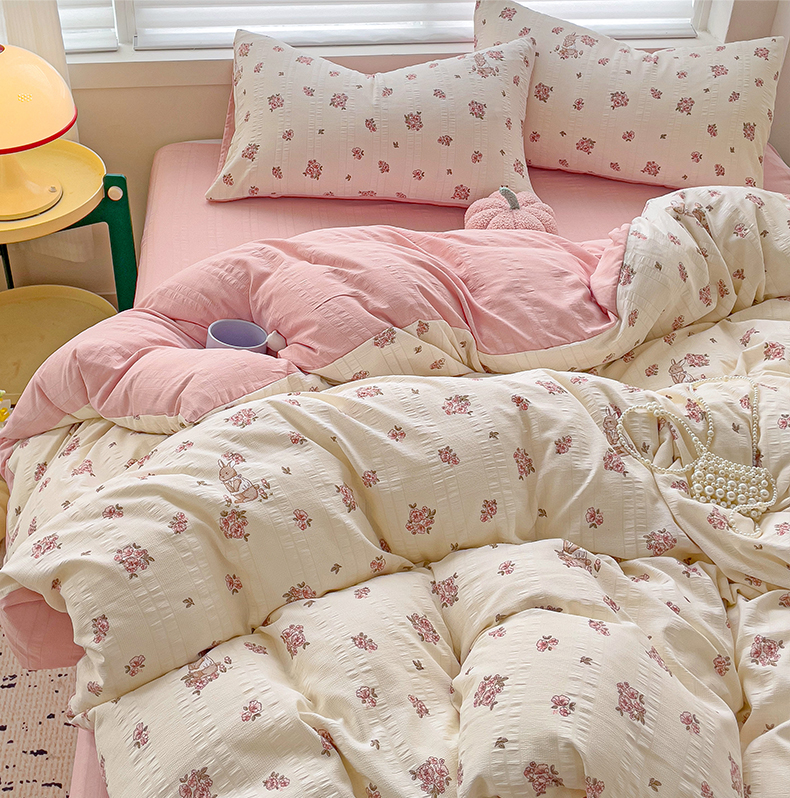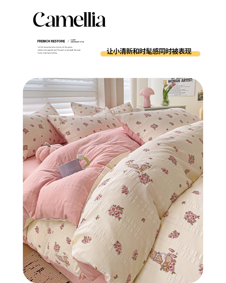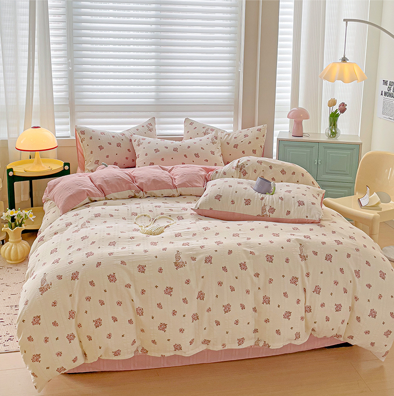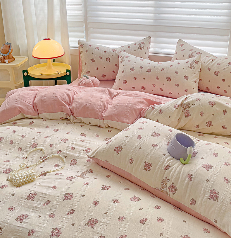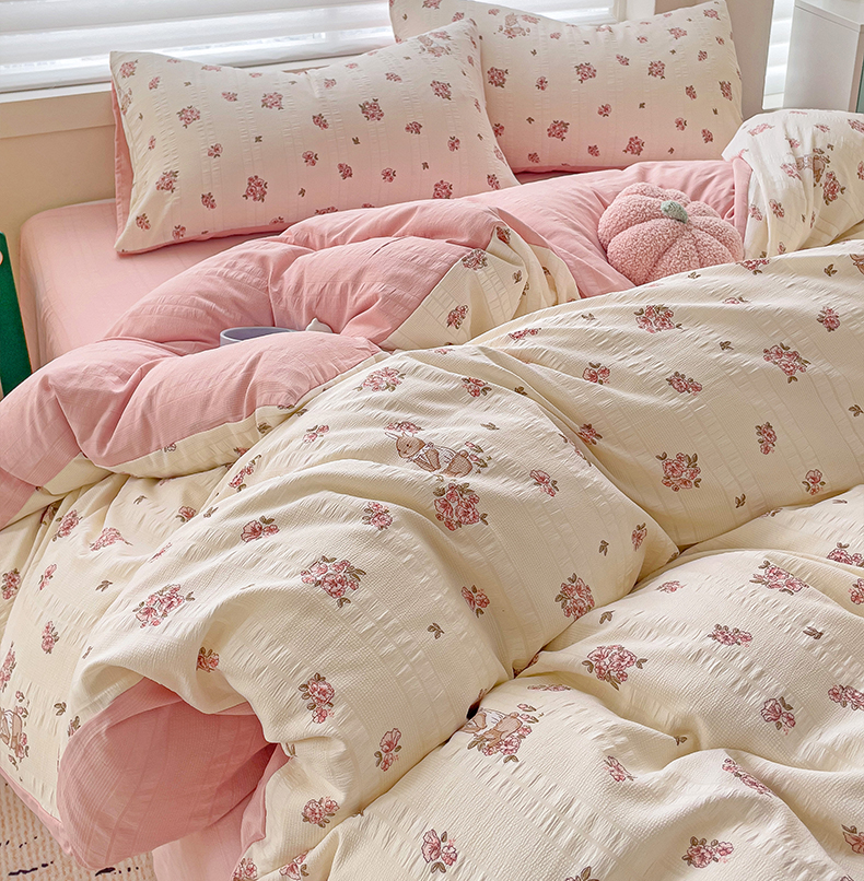 当前位置: 91家纺网 > 商品网购 > 床品套件 > 四件套 > 其它四件套 > 优选良品 2025新款有氧提花云纱棉圆角吊边工艺款四件套学生三件套 粉黛落樱