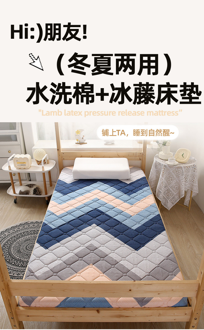 当前位置: 91家纺网 > 商品网购 > 床垫/床褥 > 普通床垫 > 2025新款水洗棉冰藤凉席款床垫-学生床 凉席款加厚水云间