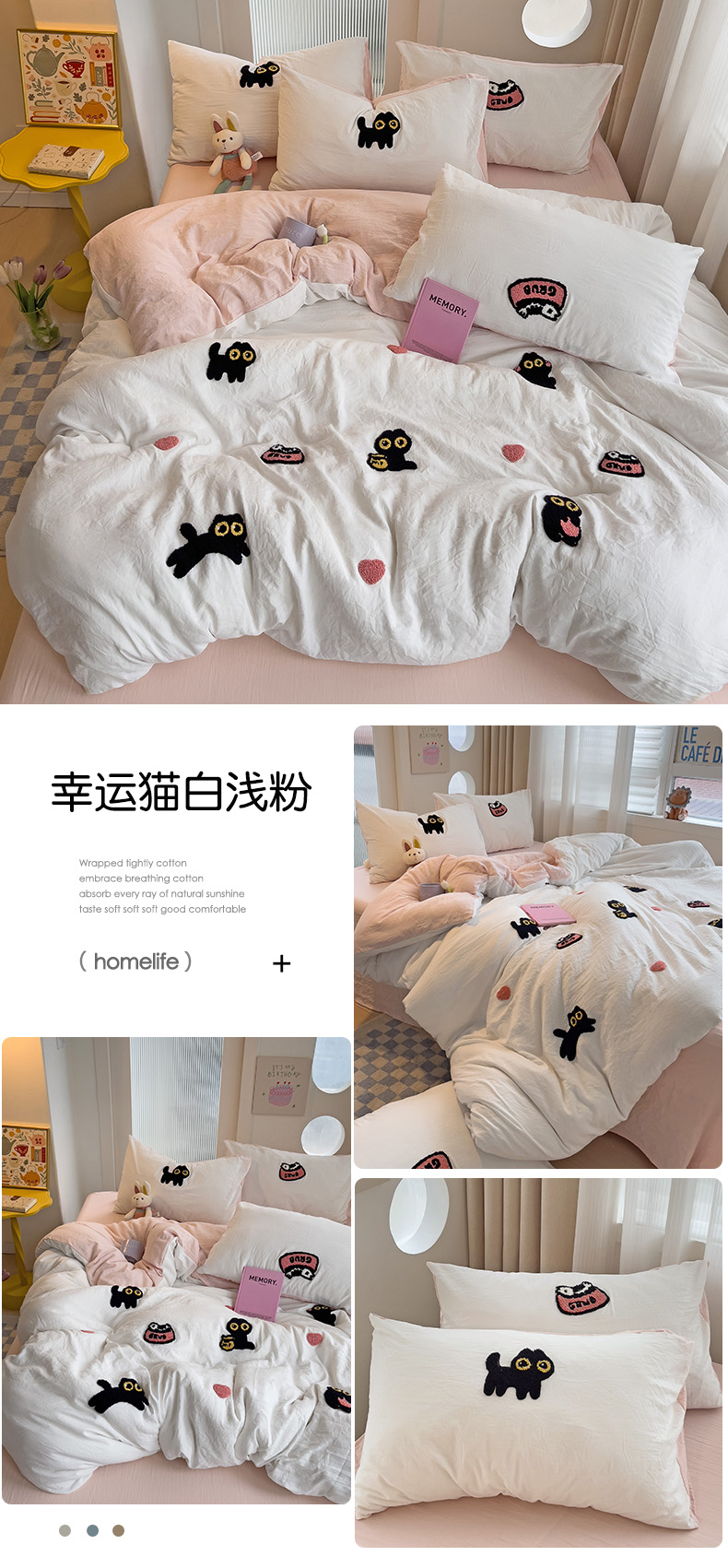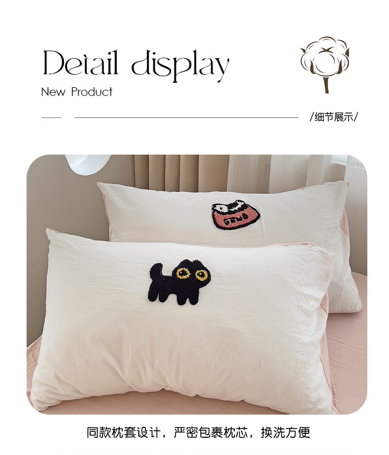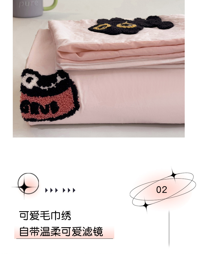 商品名称:韩巢家纺 2024新款四季通用超柔水洗棉毛巾绣单件被套-幸运猫系列(提供卖家秀 ) 幸运猫白浅粉