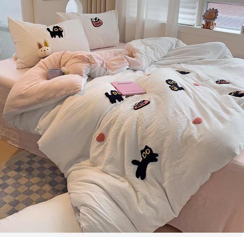 (总)韩巢家纺 2025新款水洗棉大花边被套四件套直播热销款学生宿舍被罩床单三件套(提供卖家秀),春日与玫瑰【大花边款】,繁花似梦【大花边款】,花时宇间【大花边款】,灰蒙小狗【大花边款】,久期诗朵-黄【大花边款】,可可腊肠犬【大花边款】,奶油樱桃【大花边款】,软糖猫【大花边款】,甜樱恋曲【大花边款】,温暖粉心【大花边款】,小花野-紫【大花边款】,小熊冰淇淋【大花边款】,星梦蝶结【大花边款】,幸运可爱兔【大花边款】,摘樱桃的小熊【大花边款】