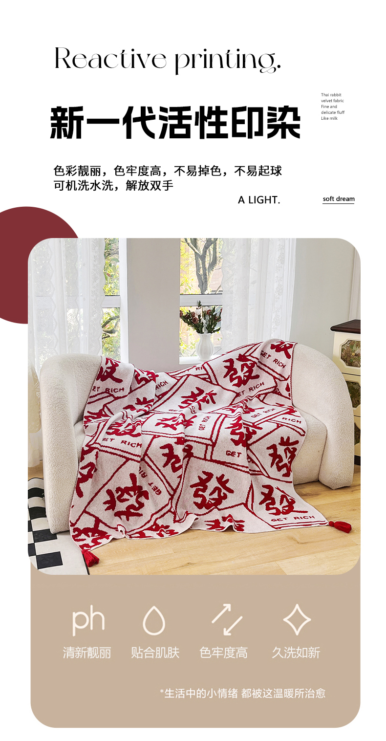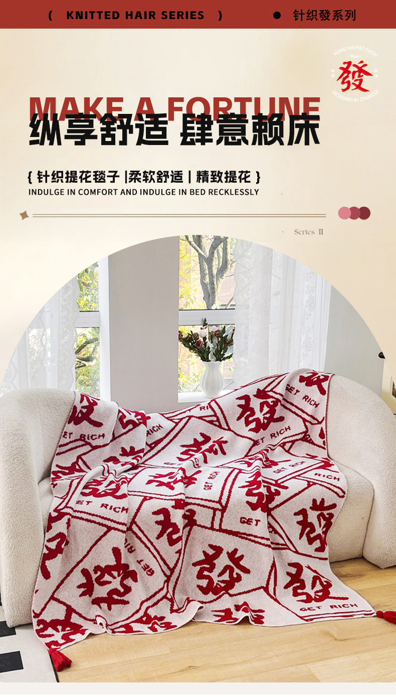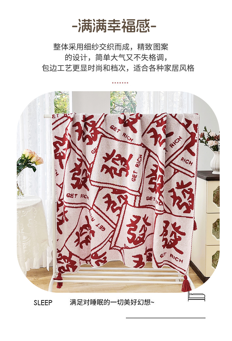 商品名称:栩裕纺织 2024新款针织提花盖毯發系列(可定制) 针织-發發發