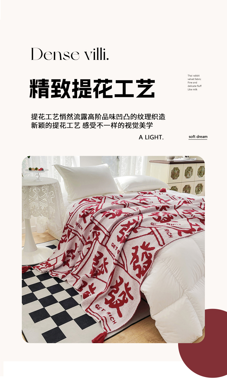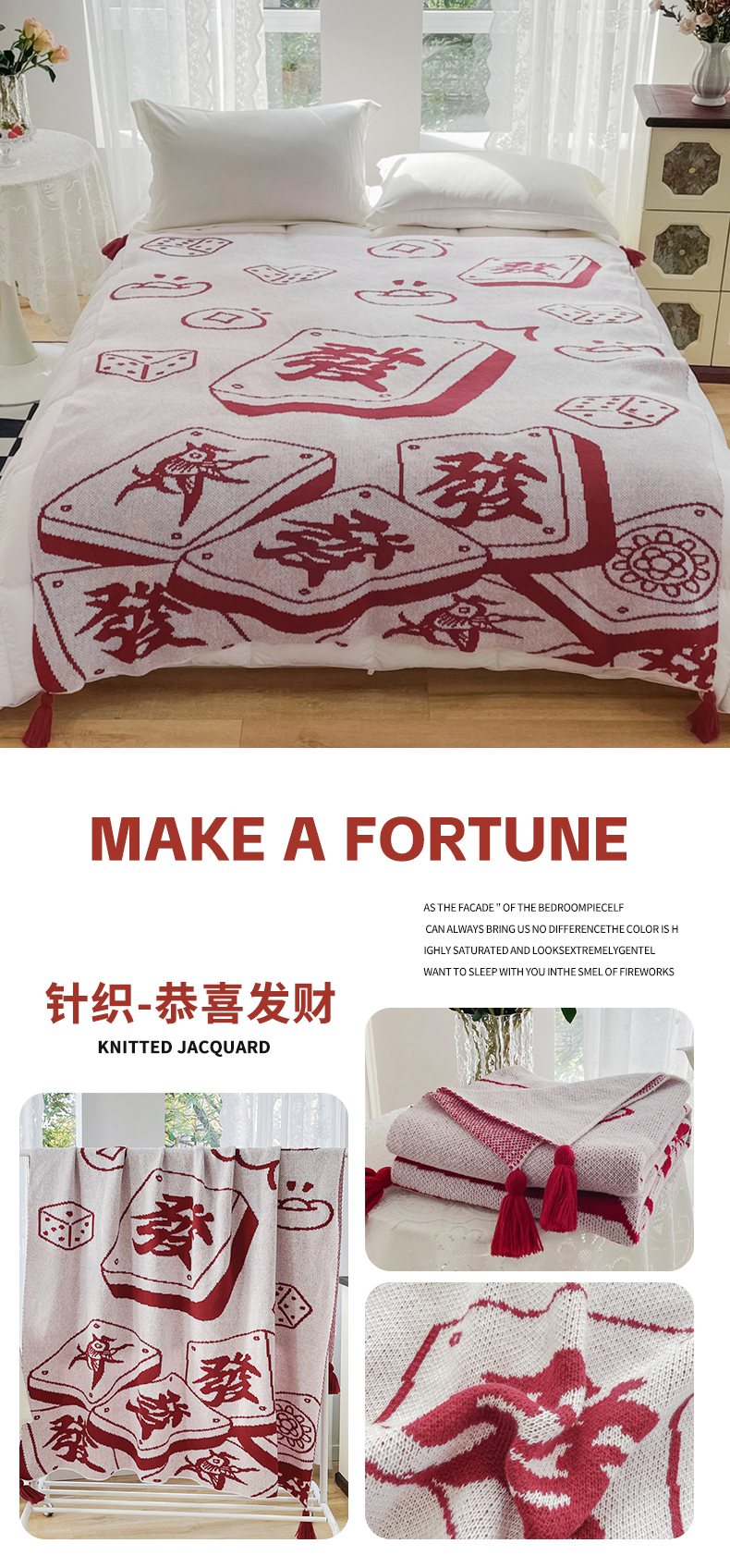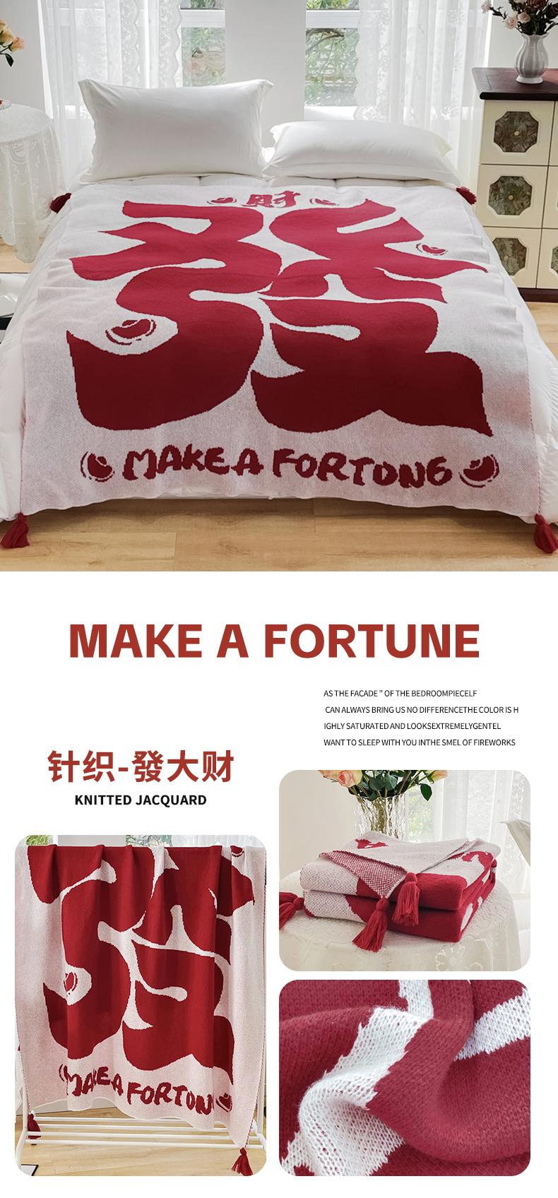 商品名称:栩裕纺织 2024新款针织提花盖毯發系列(可定制) 针织-發發發