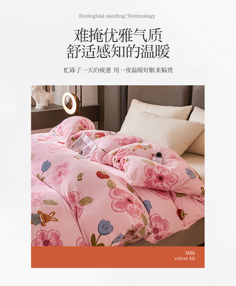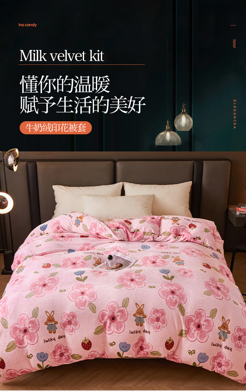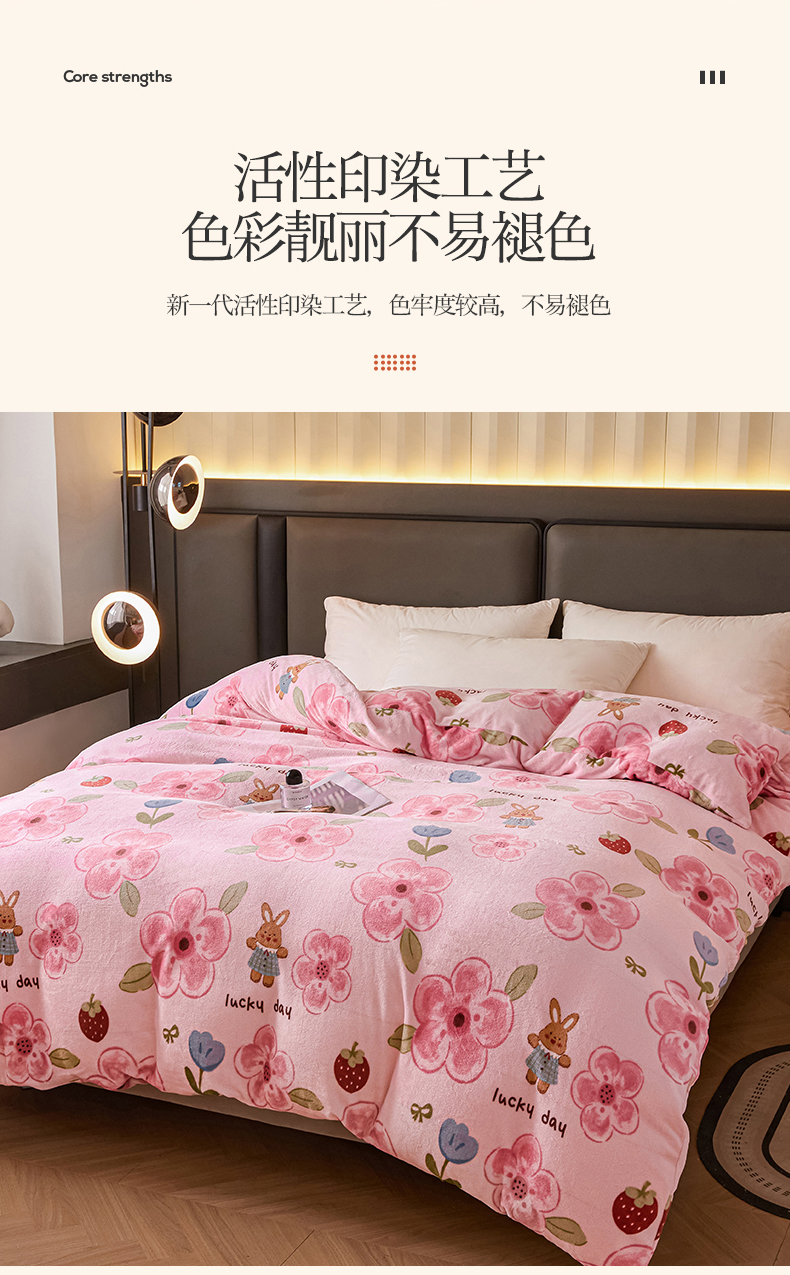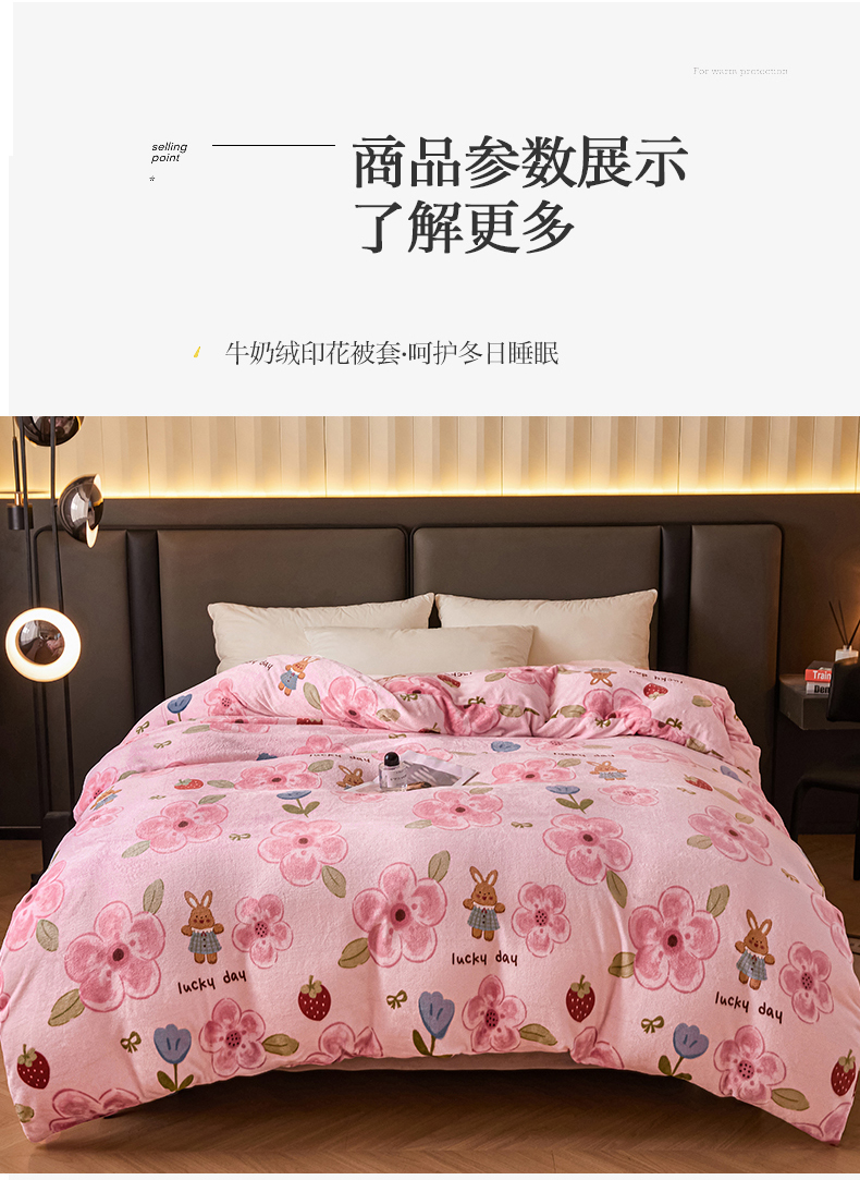 商品名称:董韵家纺 2025新款高克重全消光牛奶绒法莱绒金貂绒印花单品被套床裙四件套(提供买家秀) 钱兔似锦