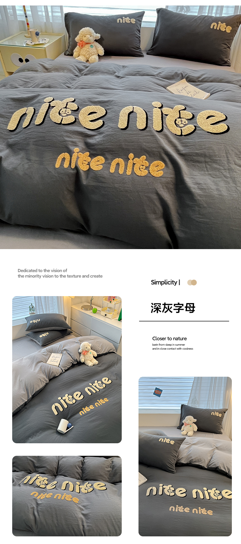 当前位置: 91家纺网 > 商品网购 > 床品套件 > 四件套 > 水洗棉四件套 > 优承佳生活馆 2024新款水洗m毛巾绣四件套 深灰字母