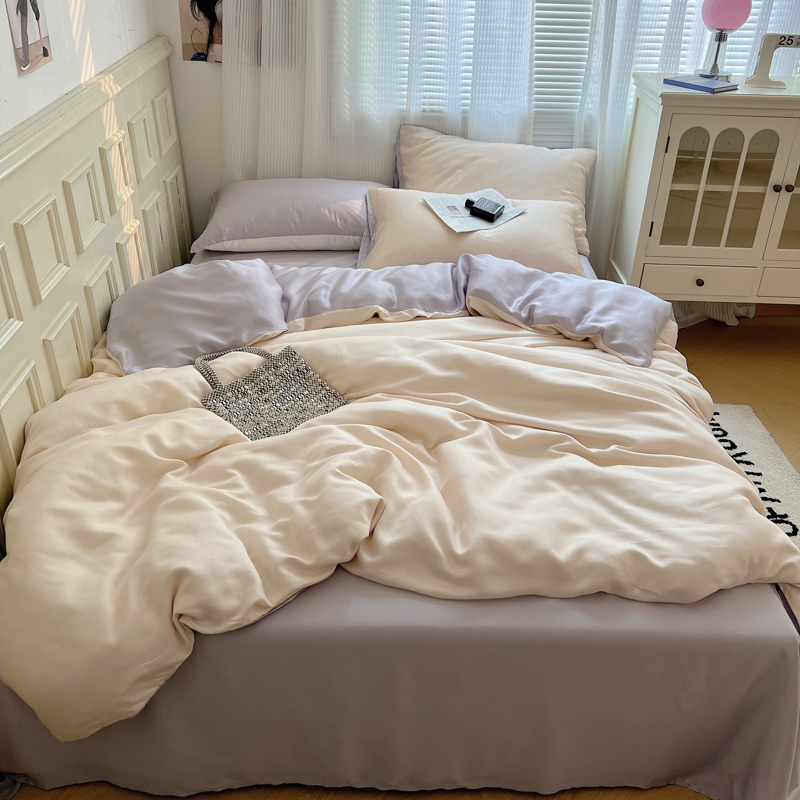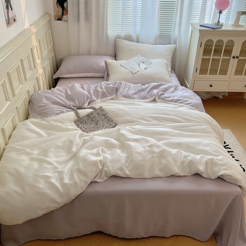 当前位置: 91家纺网 > 商品网购 > 床品套件 > 四件套 > 其它四件套 > 繁花 2024新款极简风水洗真丝四件套-风格二 白桃芋紫