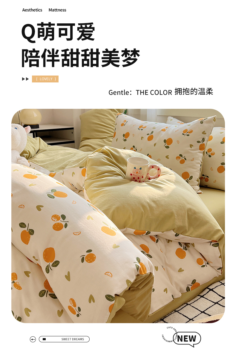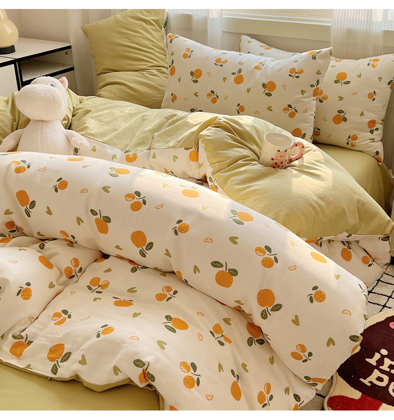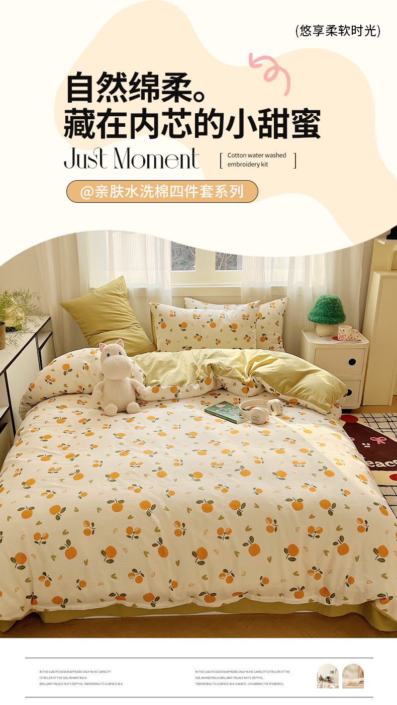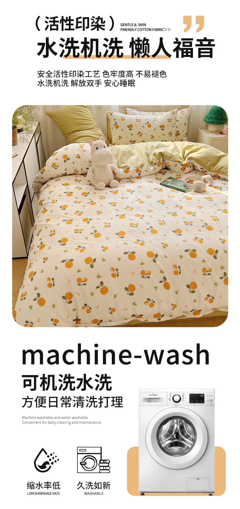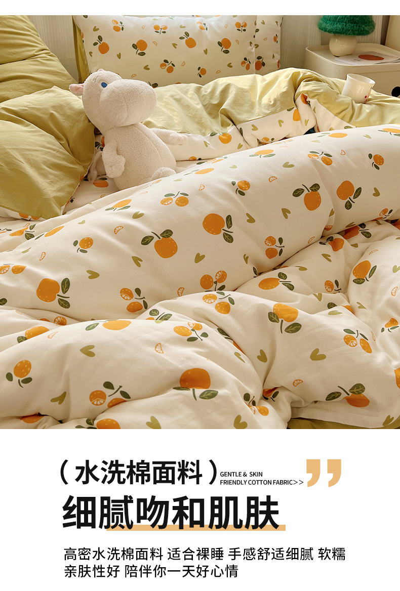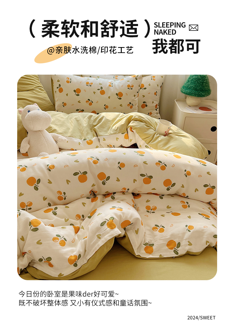 • 91家纺网 家纺一手货源 找家纺 繁花 2024新款印花水洗棉亲肤舒适卡通系列 小橘子