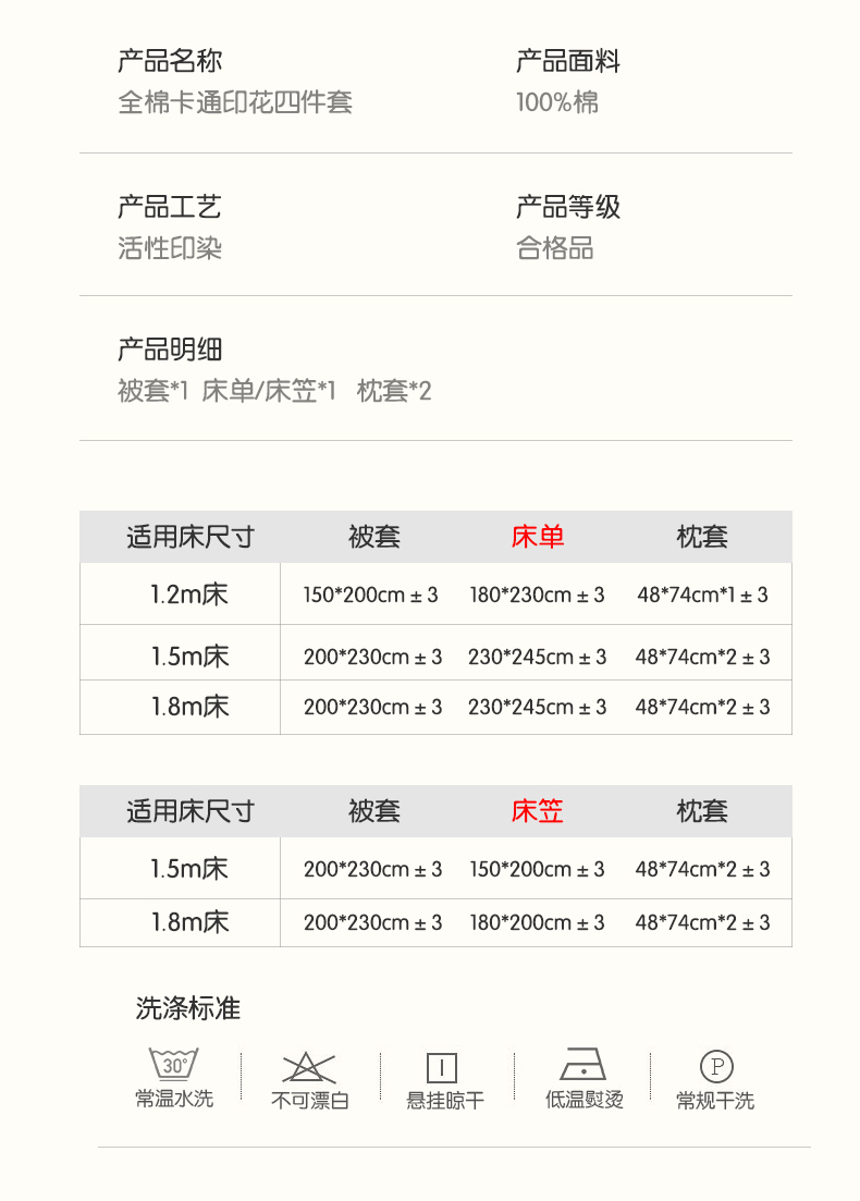 1.8m床笠款四件套 | ¥125.00 |