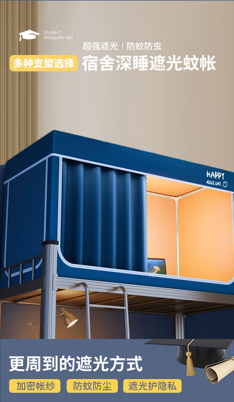 (总)梓瑄家居 2025新款遮光上下铺学生宿舍儿童防尘蚊帐,藏青,黄色,蓝色,绿色,驼色