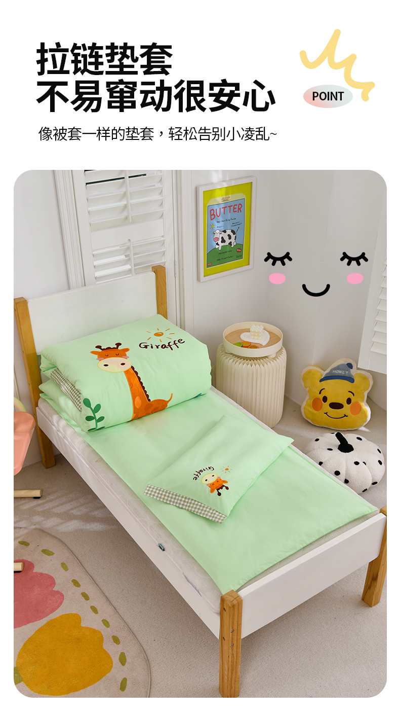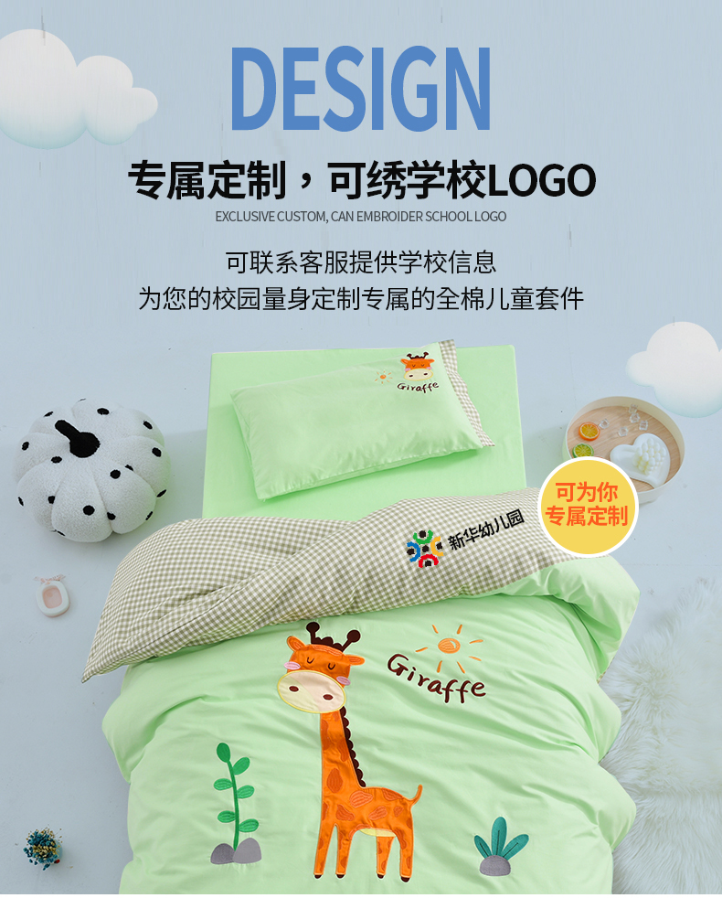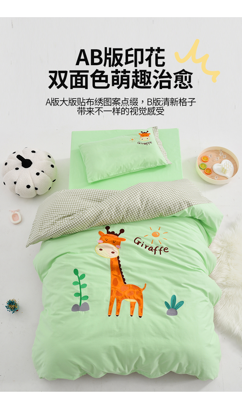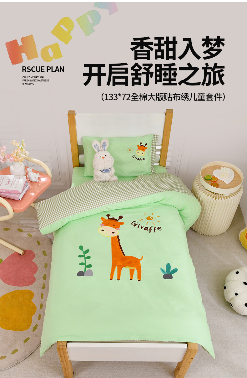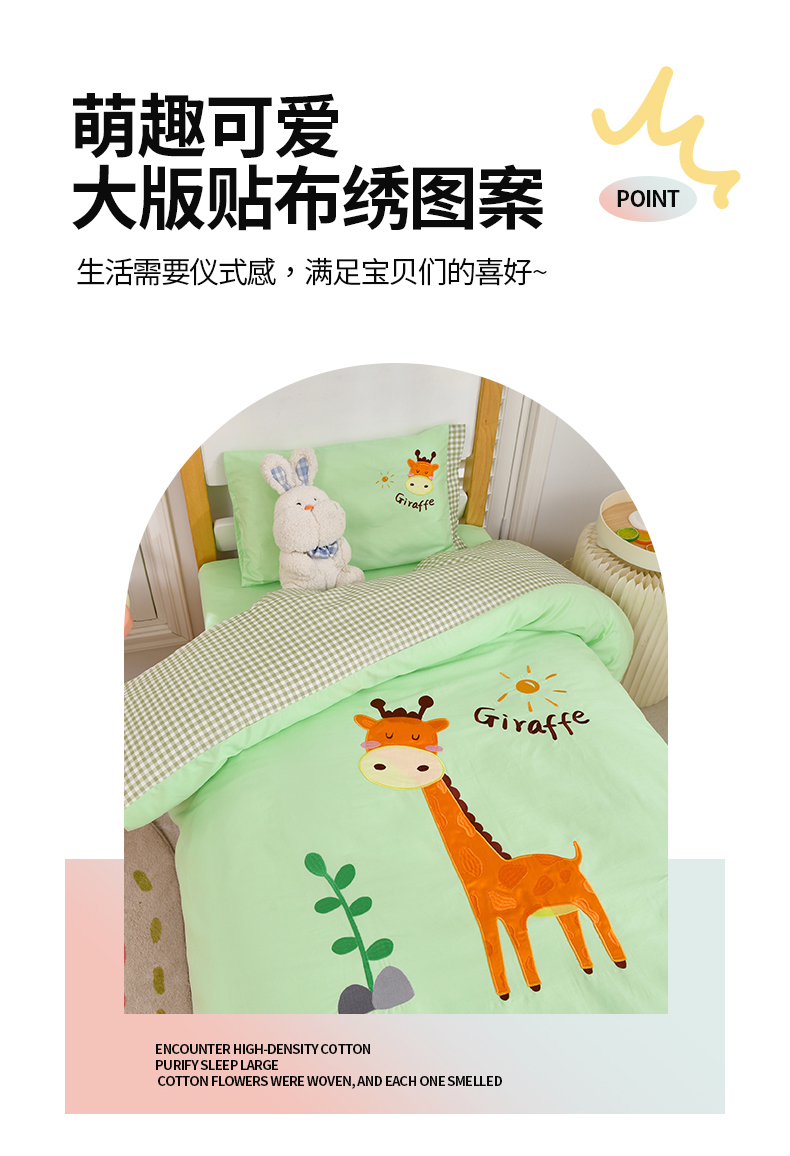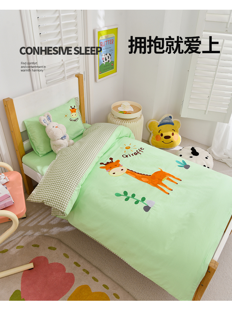 当前位置: 91家纺网 > 商品网购 > 床品套件 > 六件套 > 嗨皮宝贝 2024新款全棉绣花幼儿园被子三件套儿童午睡棉被褥宝宝入园六件套 长颈鹿-绿