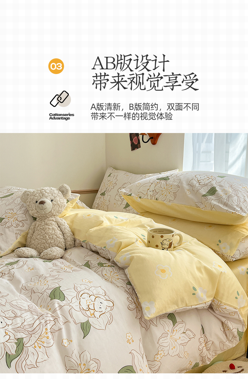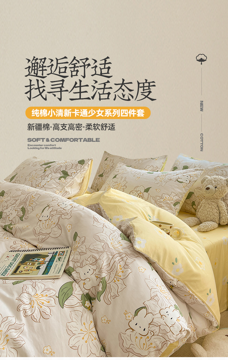 桃子家居 2024新款纯棉小清新卡通少女13372系列四件套 棉-萌小兔