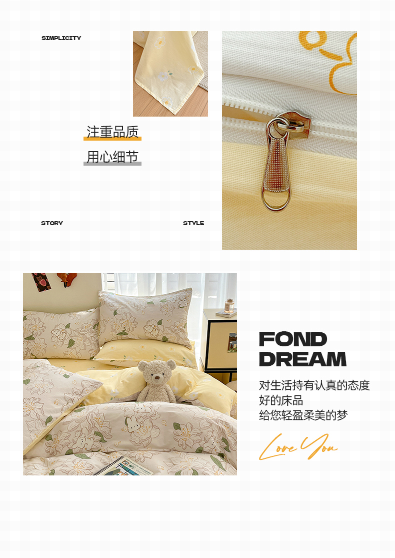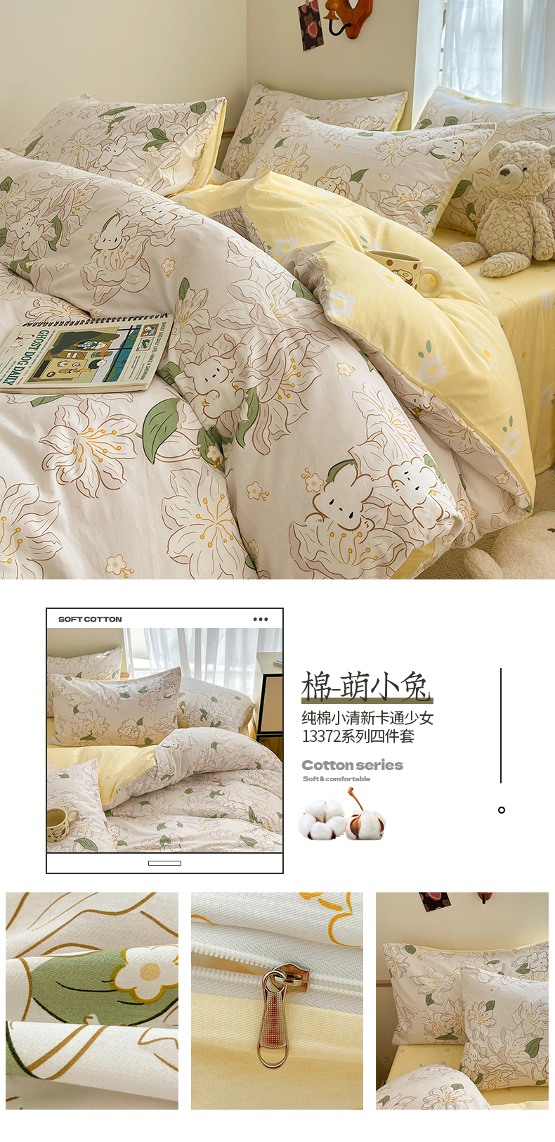 商品名称:桃子家居 2024新款纯棉小清新卡通少女13372系列四件套 棉-萌小兔