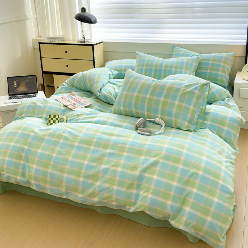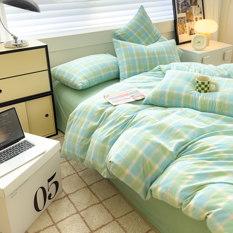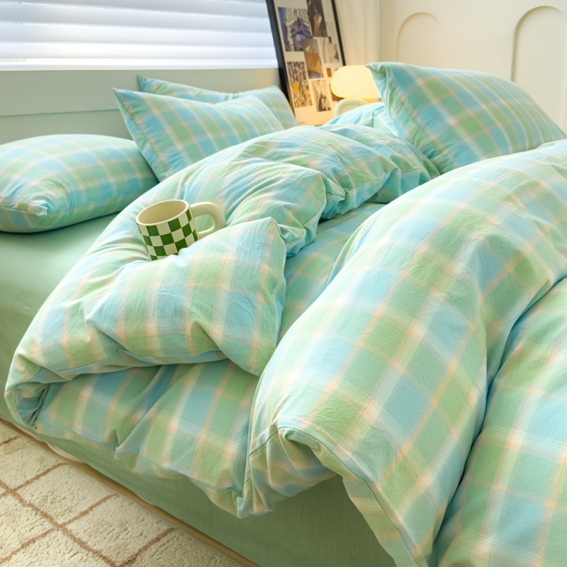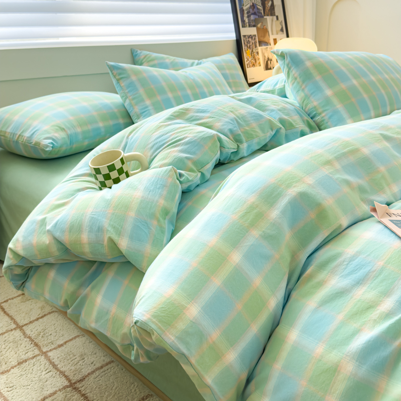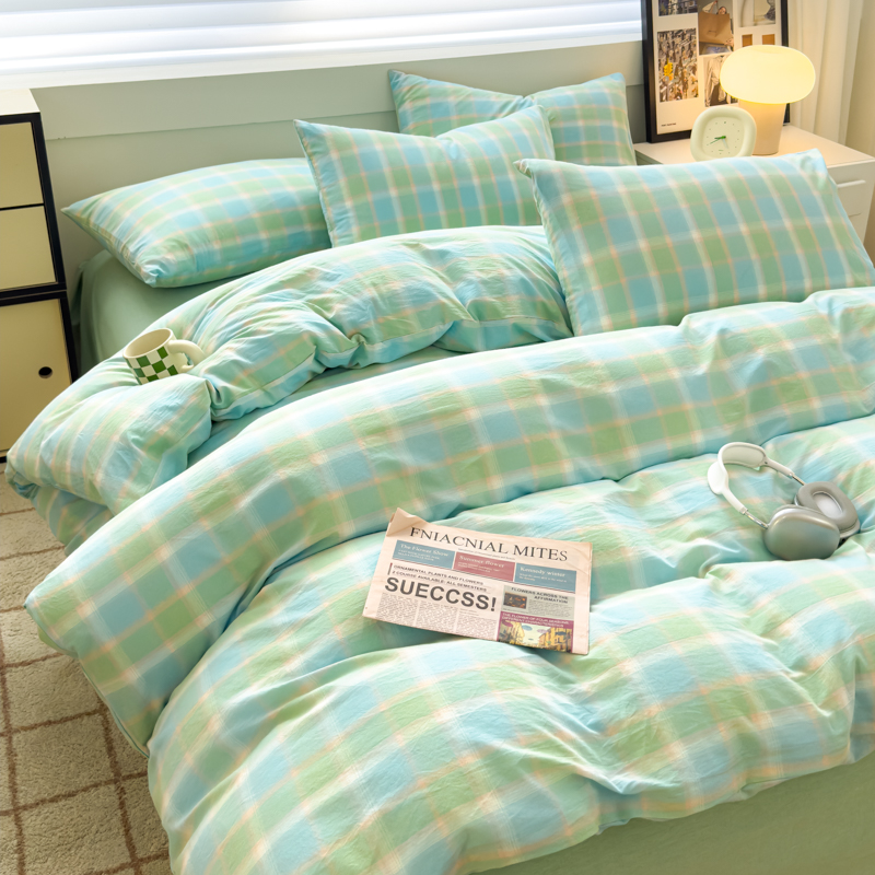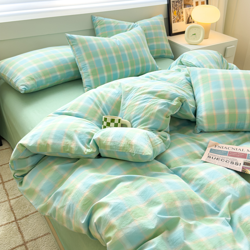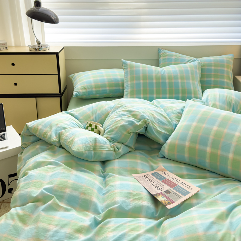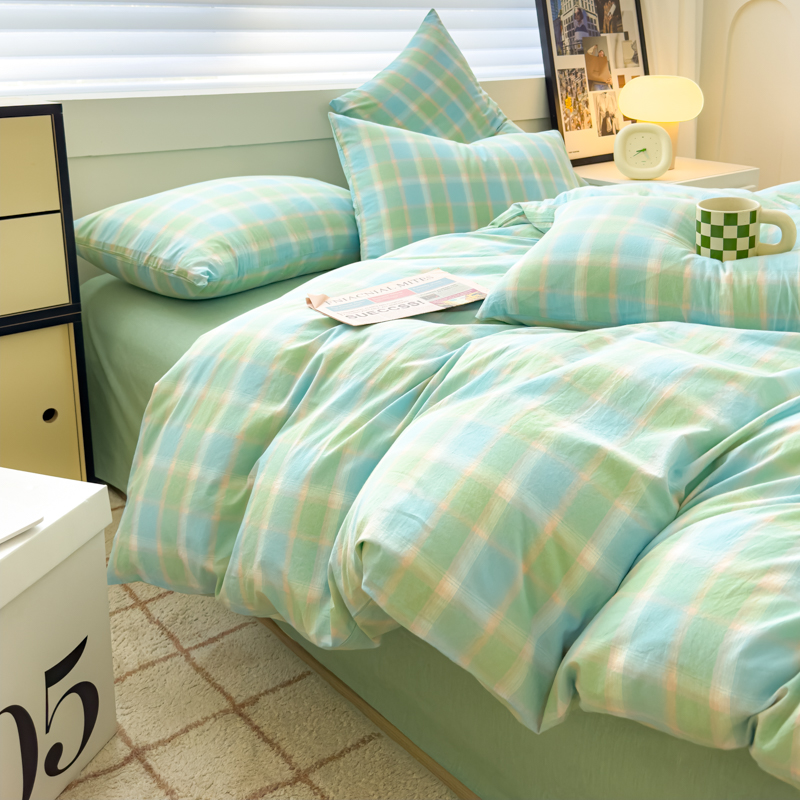 星尚家纺 2024新款A类全棉色织水洗棉三四件套系列-单被套 佛暖-果绿