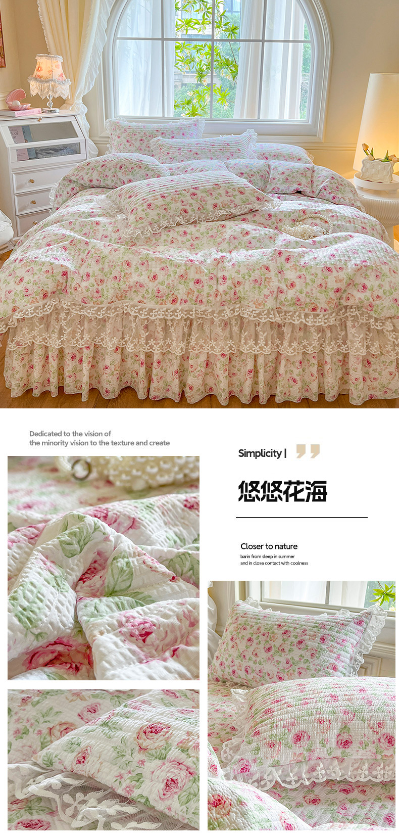 当前位置: 91家纺网 > 商品网购 > 床品套件 > 四件套 > 其它四件套 > 网红馆(ck家纺) 2025新款泡泡棉花边床裙四件套 悠悠花海