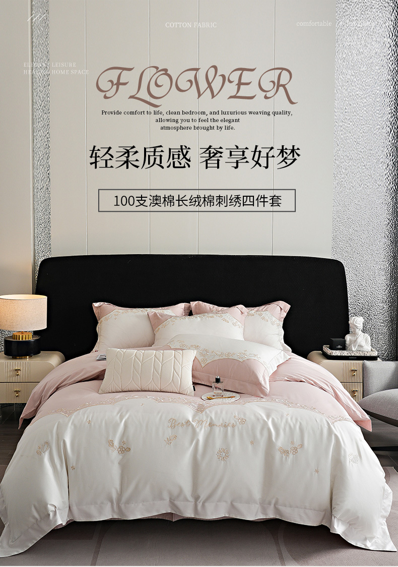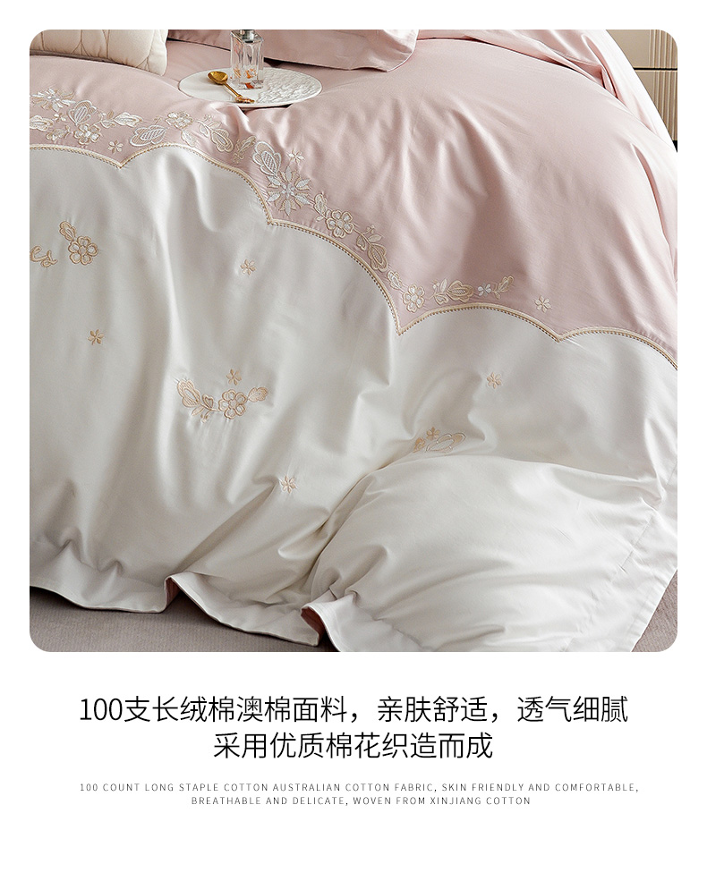 爱缦 2024新款100支澳棉四件套--花恋系列 邂逅粉