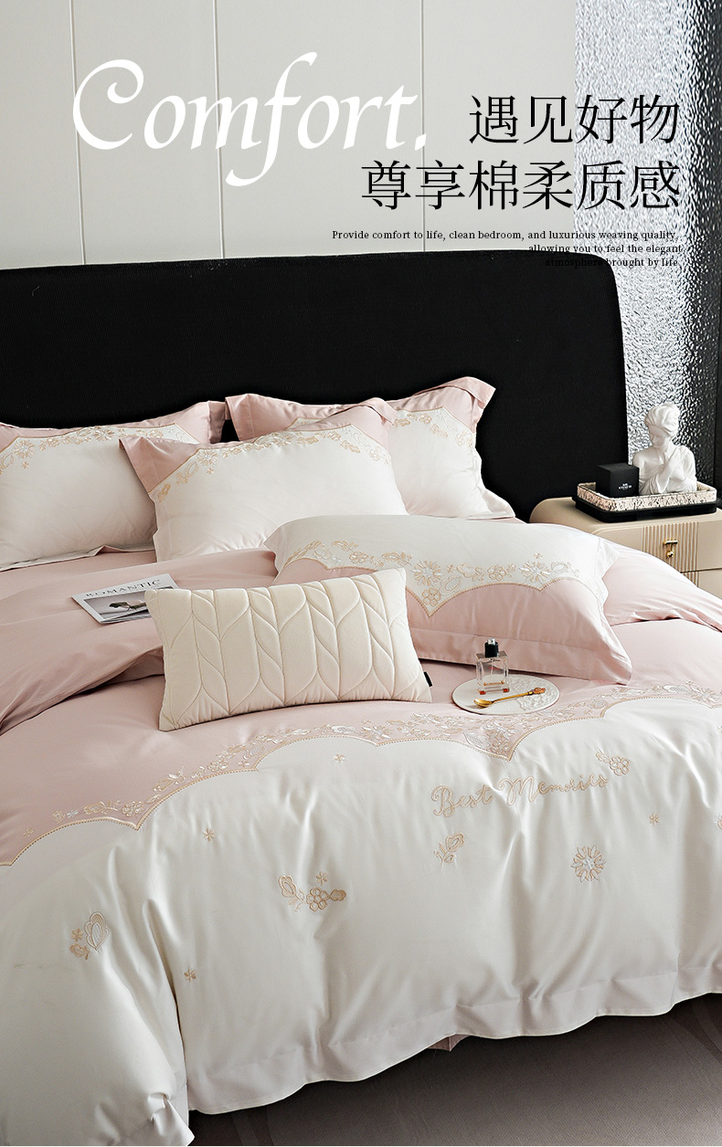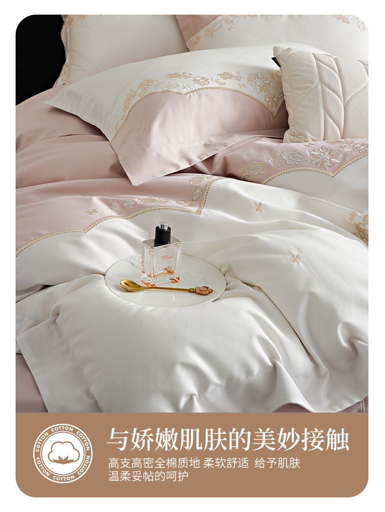 (总)爱缦 2025新款100支新疆长绒棉刺绣四件套-时光系列,时光-薄荷青,时光-芙蓉粉,时光-元气白桃