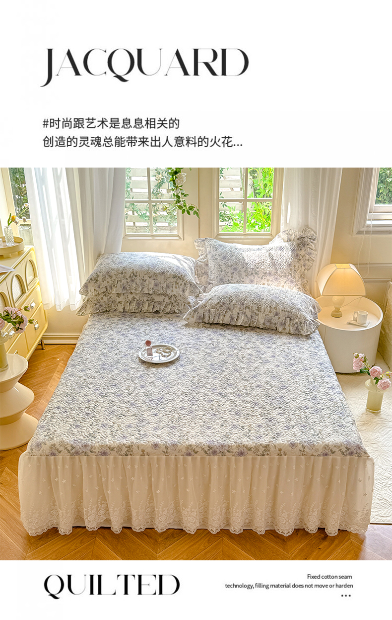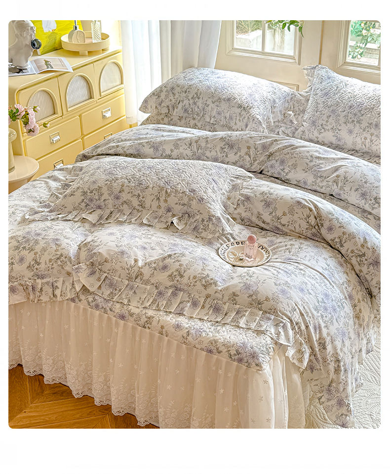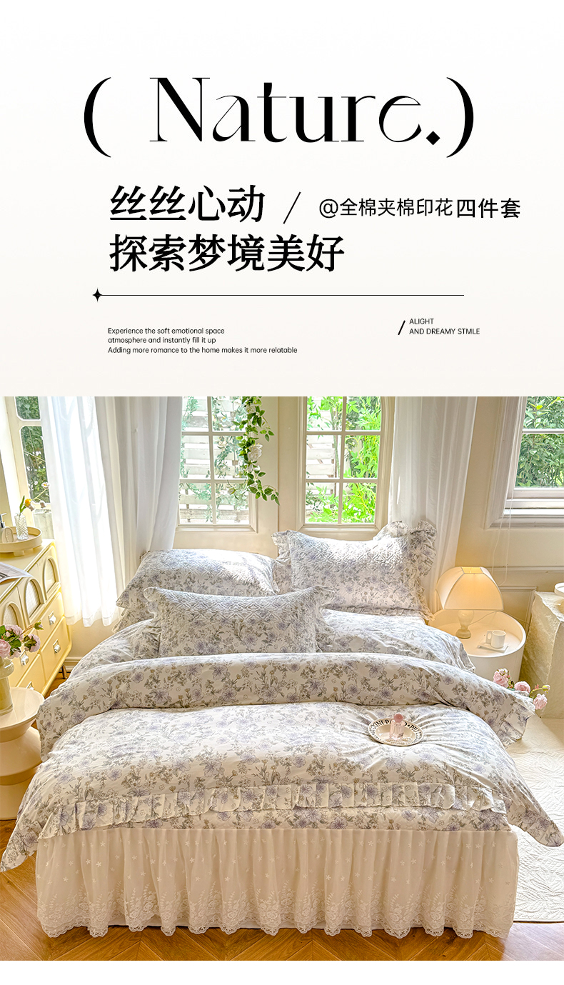 当前位置: 91家纺网 > 商品网购 > 床品套件 > 四件套 > 全棉普通四件套 > 花香四季家纺 2024新款全棉夹棉绗缝床裙款四件套纯棉印花法式套件蕾丝公主风 小清新
