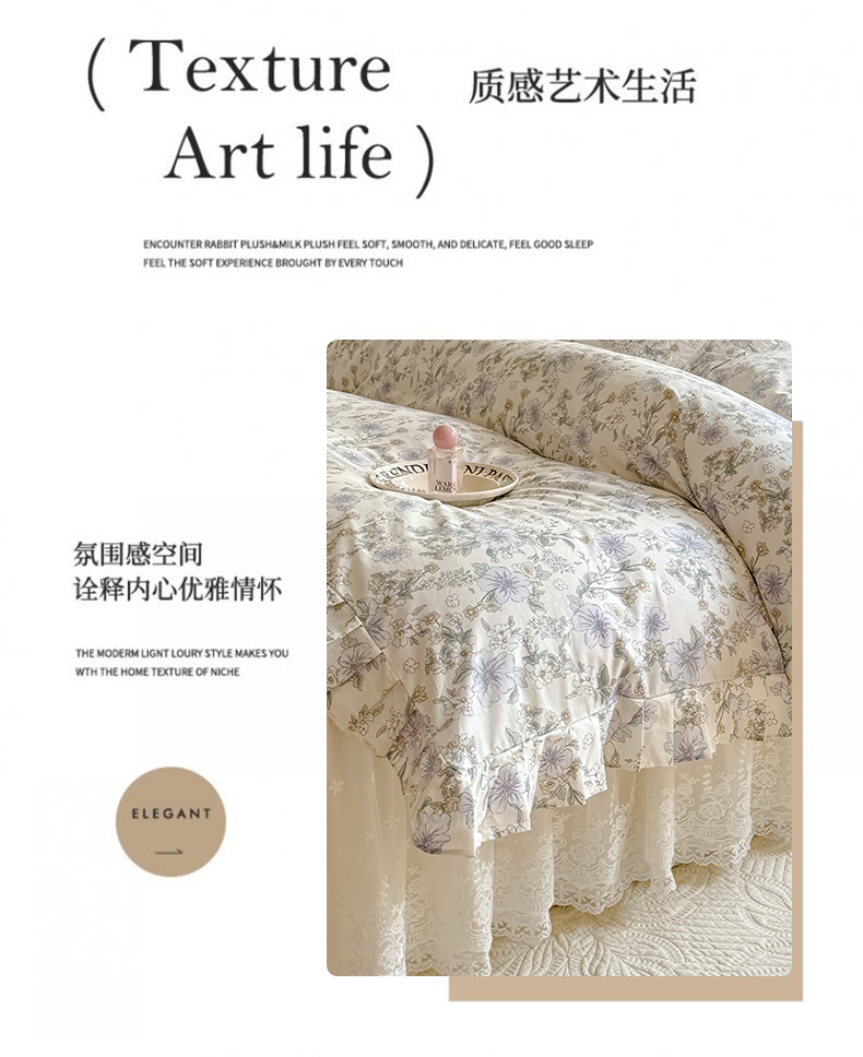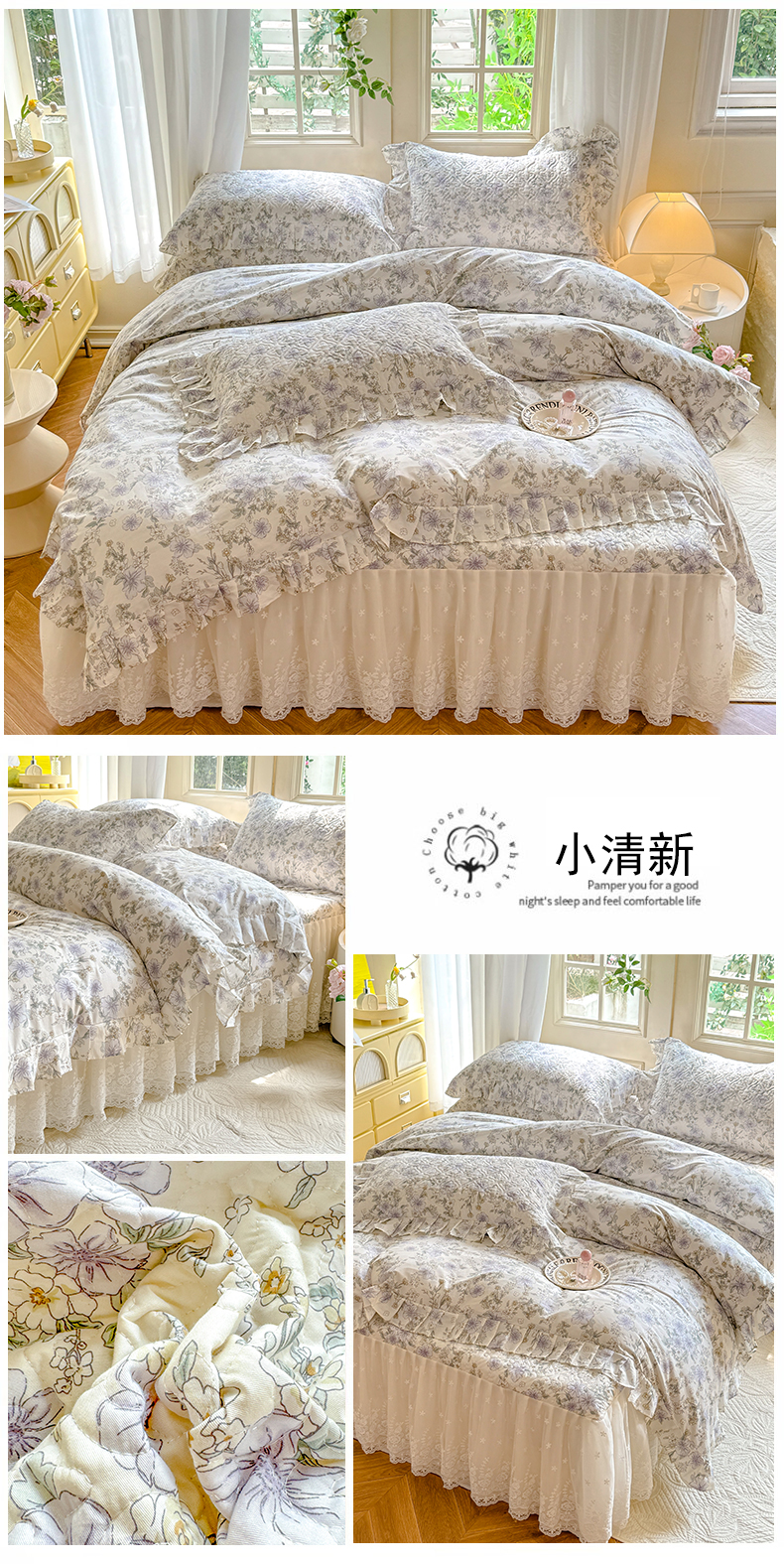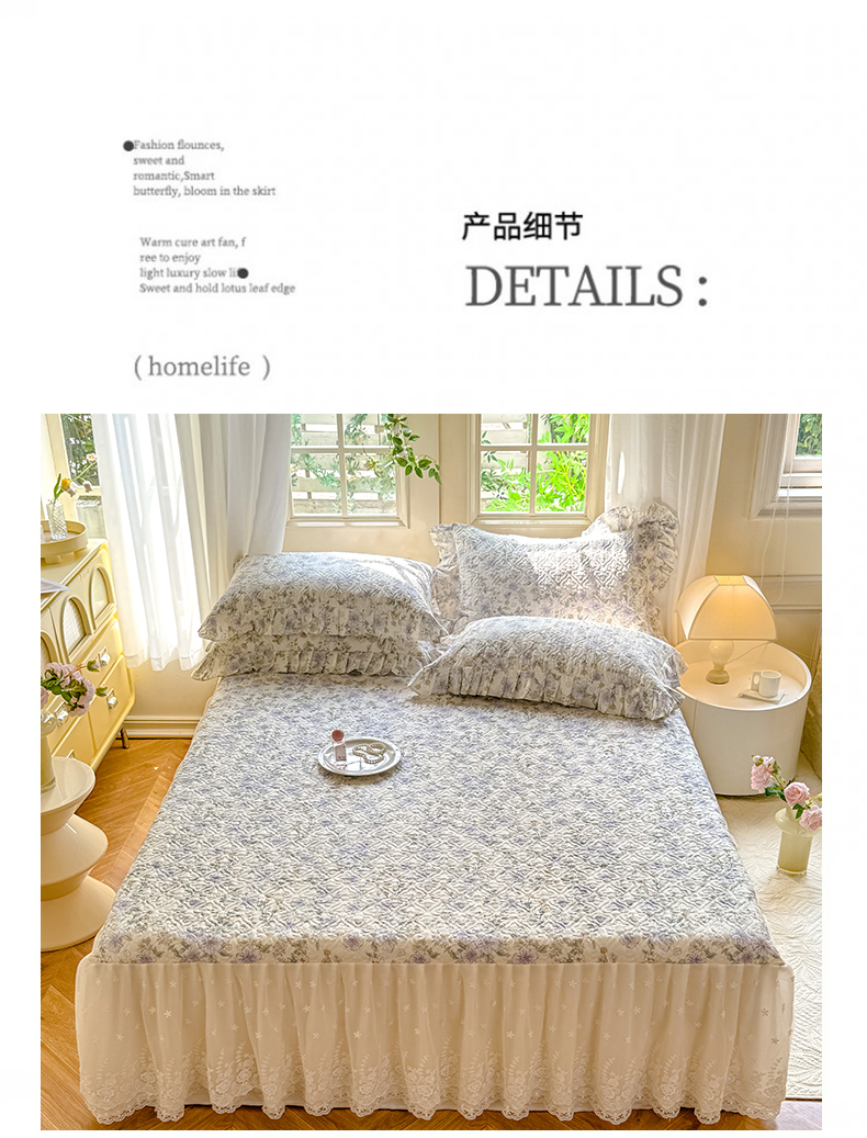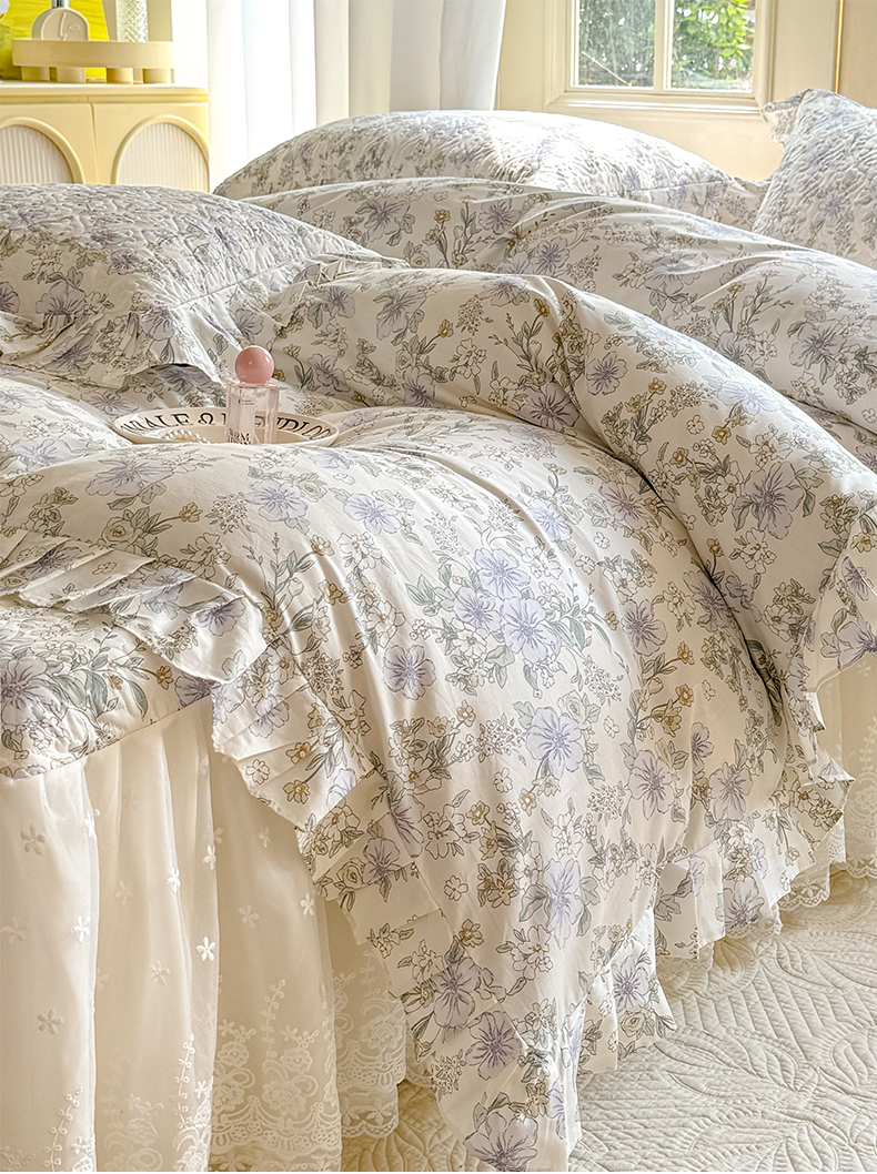 当前位置: 91家纺网 > 商品网购 > 床品套件 > 四件套 > 全棉普通四件套 > 花香四季家纺 2024新款全棉夹棉绗缝床裙款四件套纯棉印花法式套件蕾丝公主风 小清新