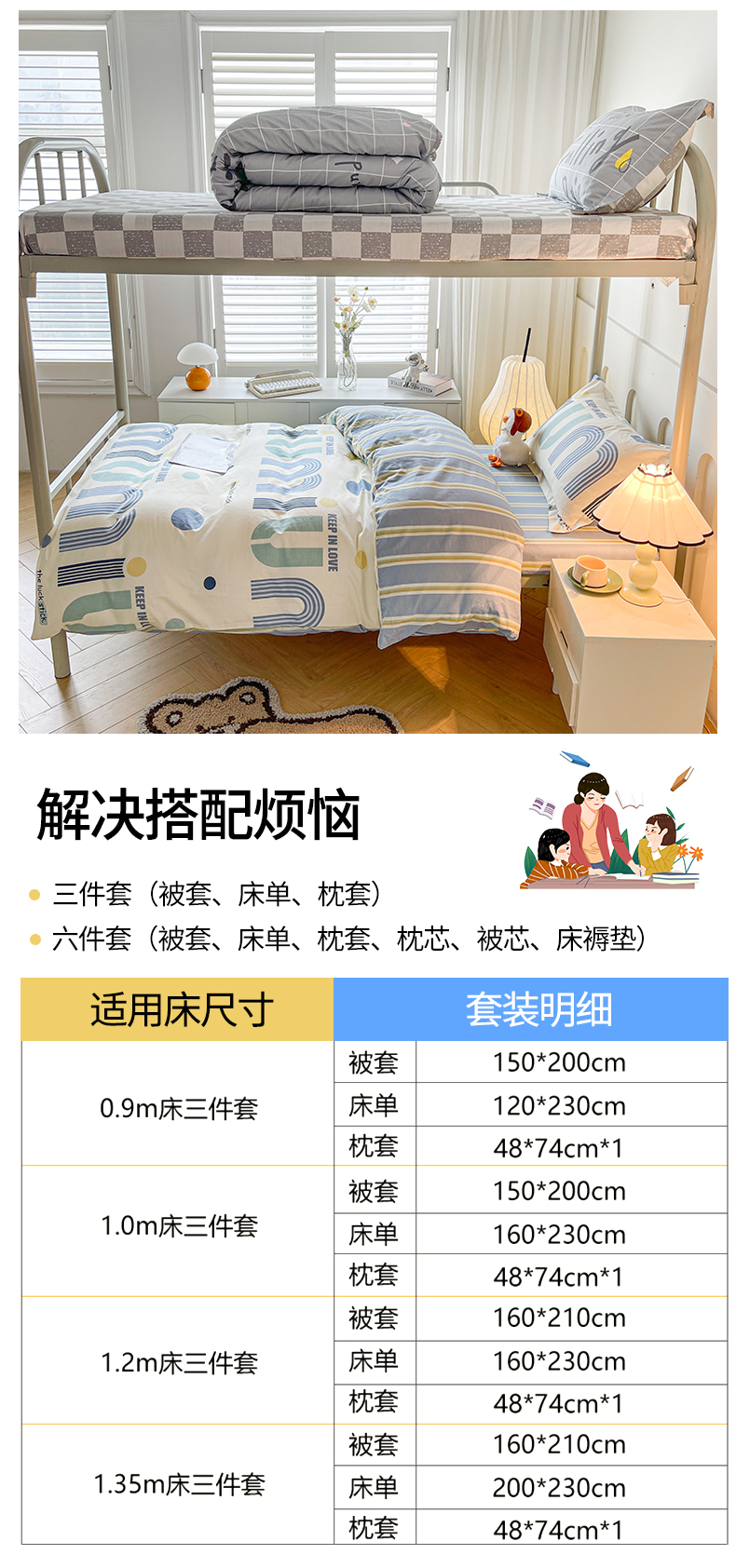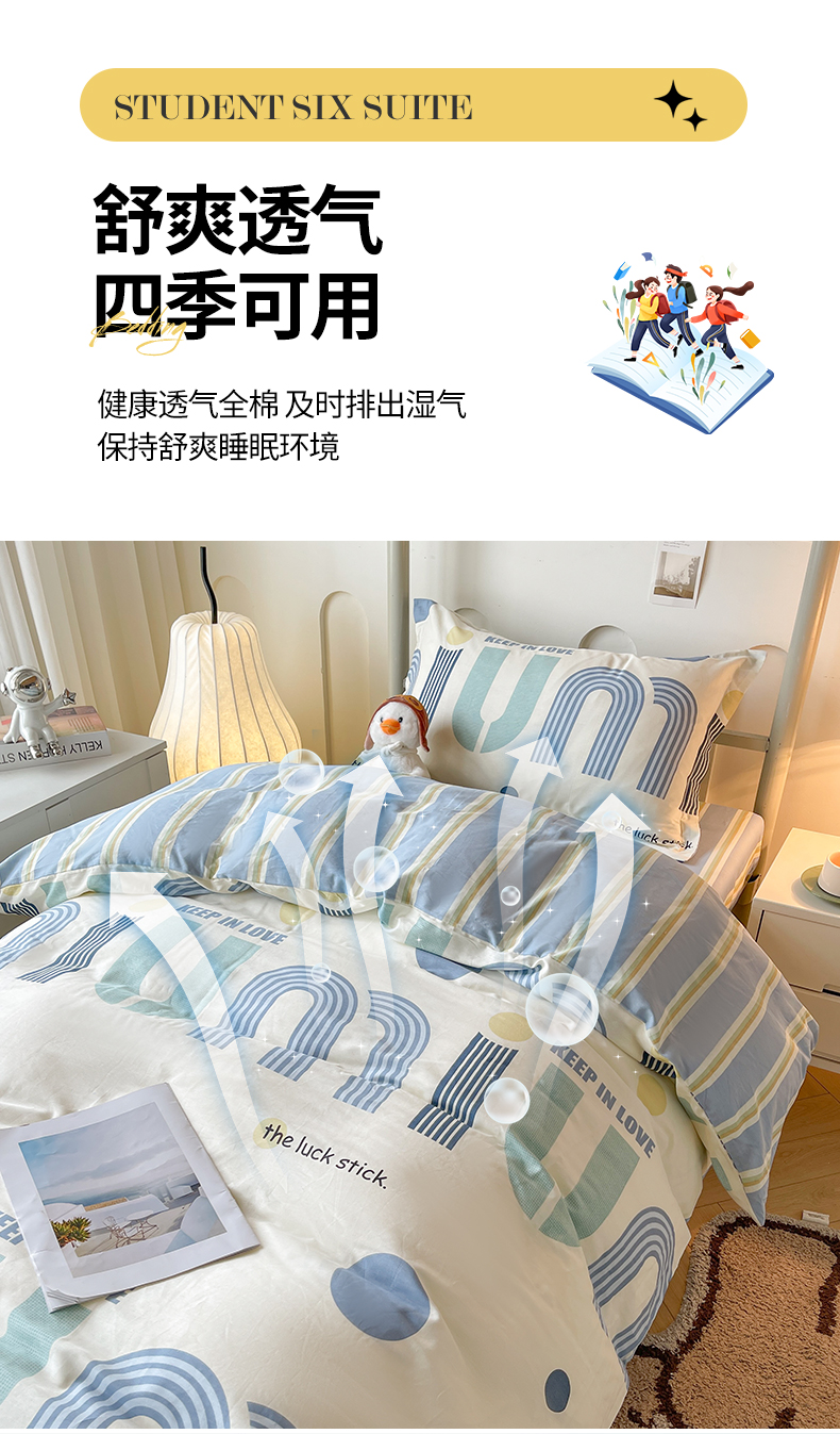 当前位置: 91家纺网 > 商品网购 > 床品套件 > 四件套 > 全棉普通四件套 > 2025新款全棉印花12868学生宿舍床三件套被芯床垫枕芯上下铺六件套 慕白