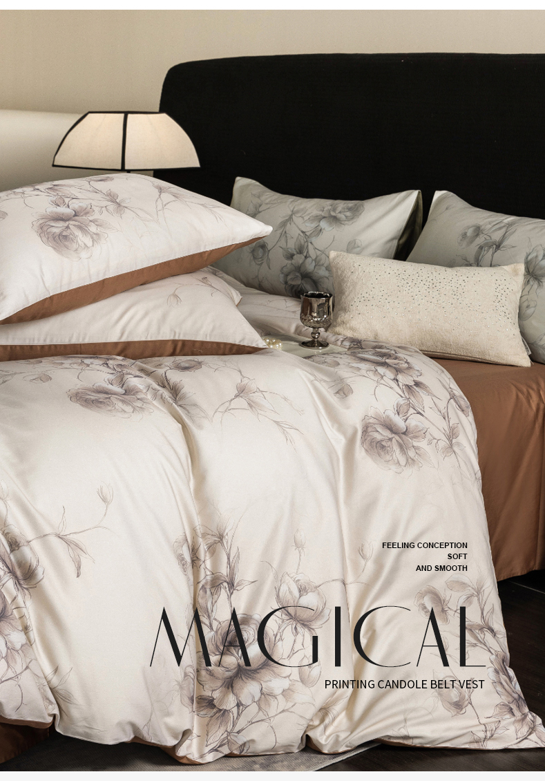 立奥被业 2024新款60*60数码印花四件套全棉四件套 玫瑰咖