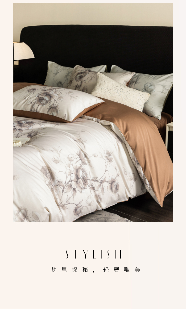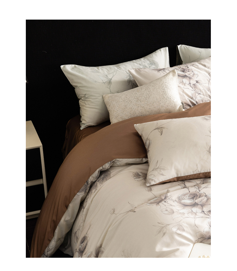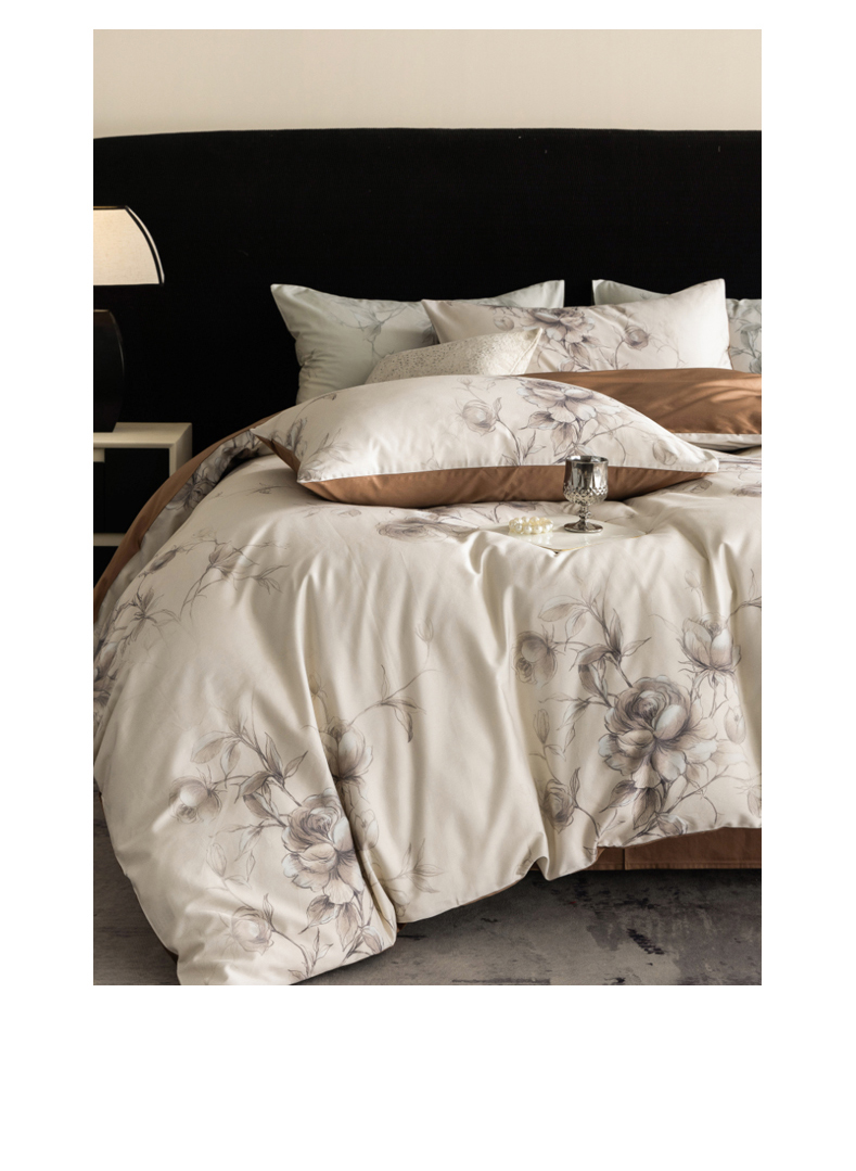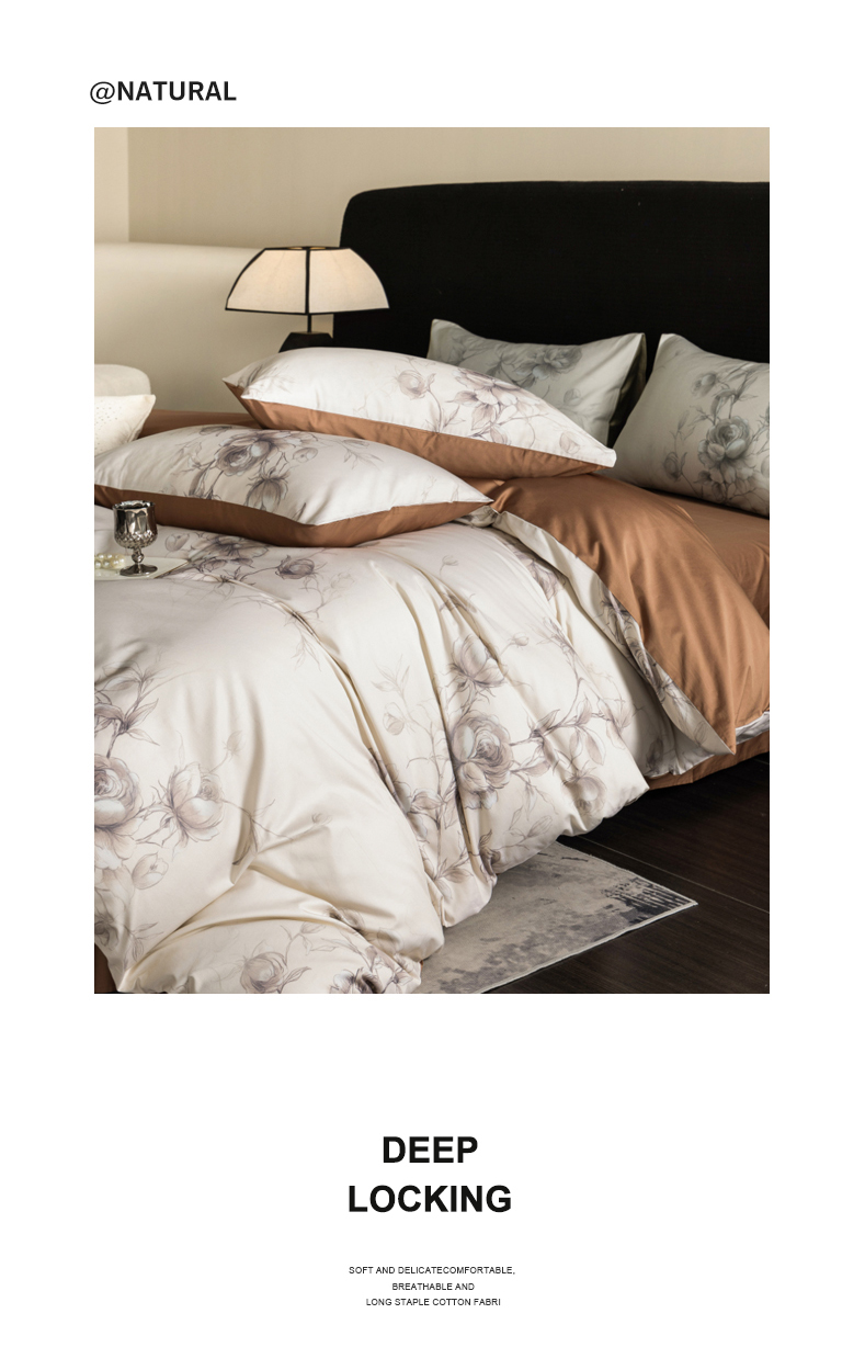 商品名称:立奥被业 2024新款60*60数码印花四件套全棉四件套 玫瑰咖